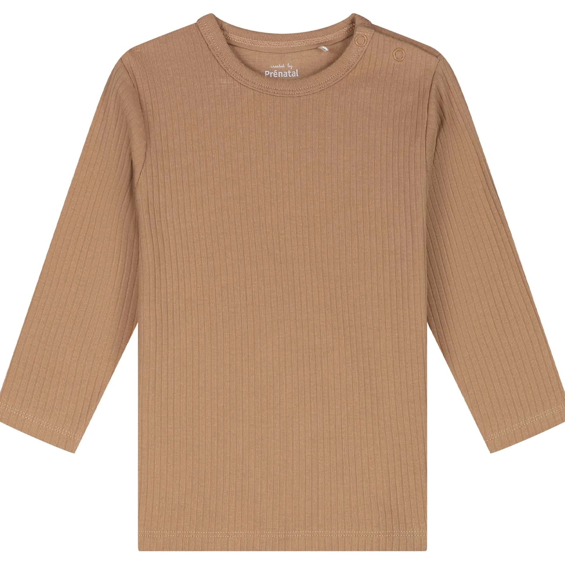 Deze Prénatal peuter pyjama is gemaakt van een zachte katoenen rib kwaliteit. De pyjama heeft lange mouwen en een mooie bruine kleur. De pyjama is gemakkelijk aan en uit te trekken door de envelophals voor babymaten en de drukknopen op de schouders voor peutermaten. De pyjama is goed te combineren met de rest van de Prénatal collectie en is verkrijgbaar in de maten 56 t/m 122. Kwaliteit: 96% katoen, 4% elastaan. Binnenstebuiten wassen op 40 graden met gelijke kleuren.