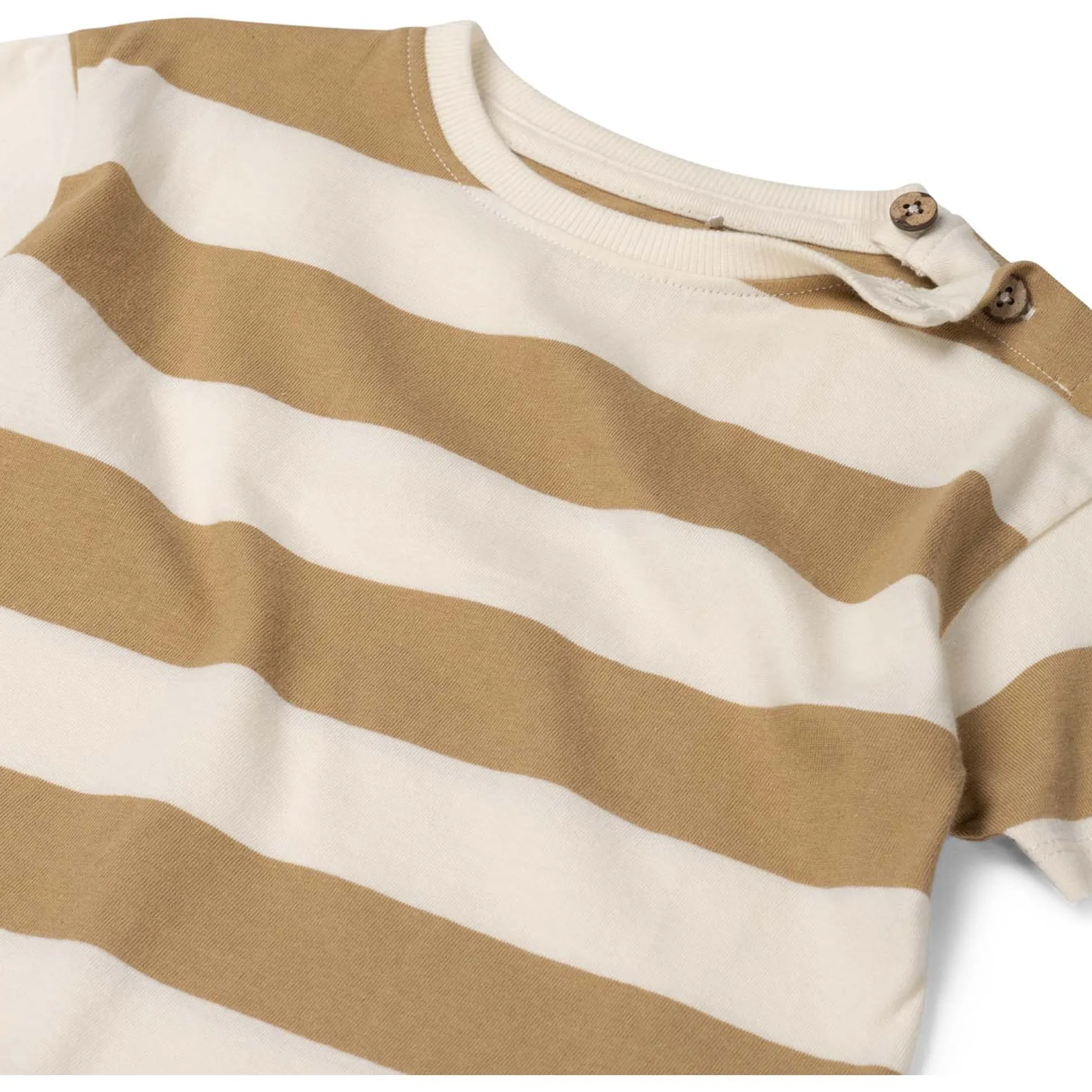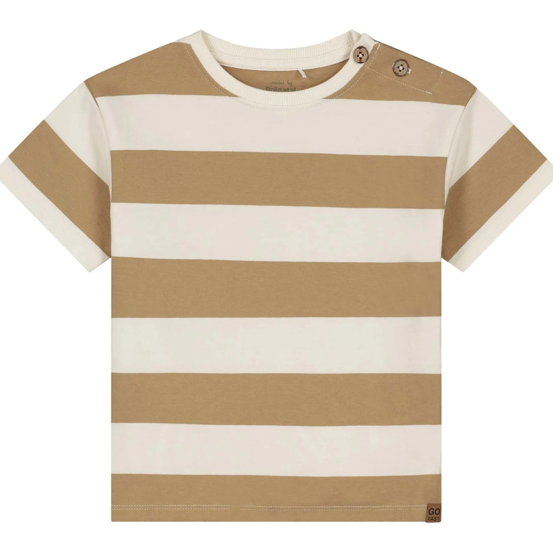 Dit Prénatal T-shirt is gemaakt van een fijne katoenen kwaliteit. Het T-shirt heeft een ronde hals, korte mouwen en een mooi streep dessin. Verder is het T-shirt goed te combineren met de rest van de Prénatal collectie. Verkrijgbaar in de maten 56 t/m 68. Kwaliteit: 100% biologisch katoen. Binnenstebuiten wassen op 40 graden met gelijke kleuren.