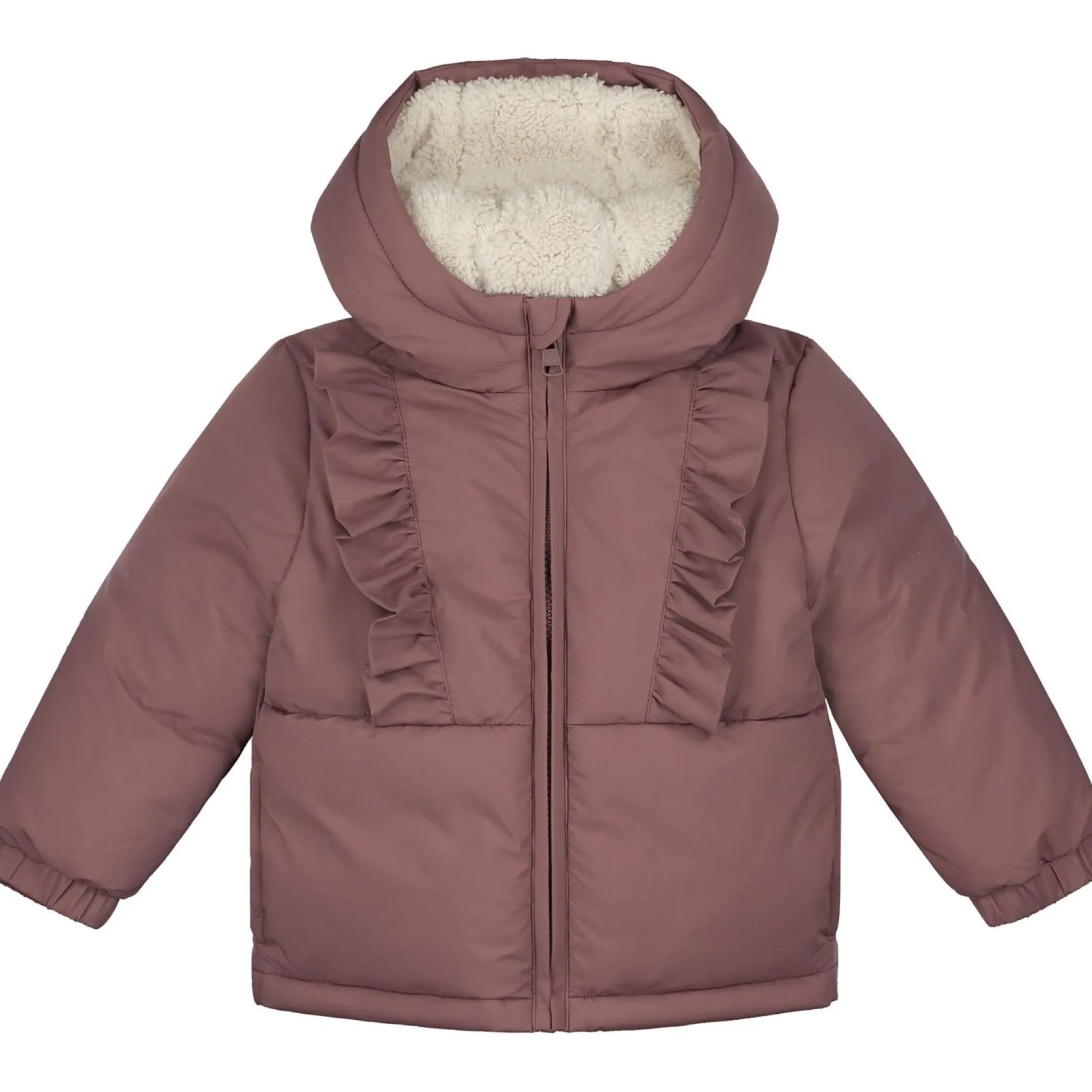 Deze Prénatal peuter winterjas is gemaakt van een fijne kwaliteit. De jas heeft een capuchon met teddy stof voering, een ritssluiting, aangesloten fit en de mouwen hebben elastiek aan de onderkant. Vanaf de schouders lopen ruffles naar beneden. De jas is voorzien van een effen kleur en is goed te combineren met de rest van de Prénatal collectie. Verkrijgbaar in de maten 74 t/m 122. Kwaliteit: 100% polyester. Binnenstebuiten wassen op 30 graden met gelijke kleuren.
