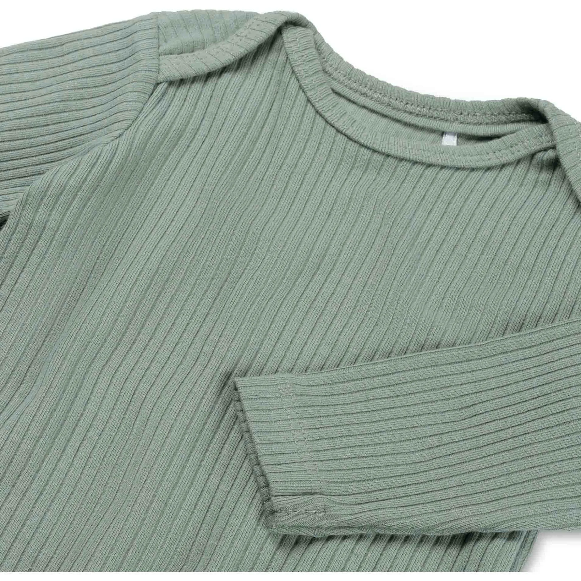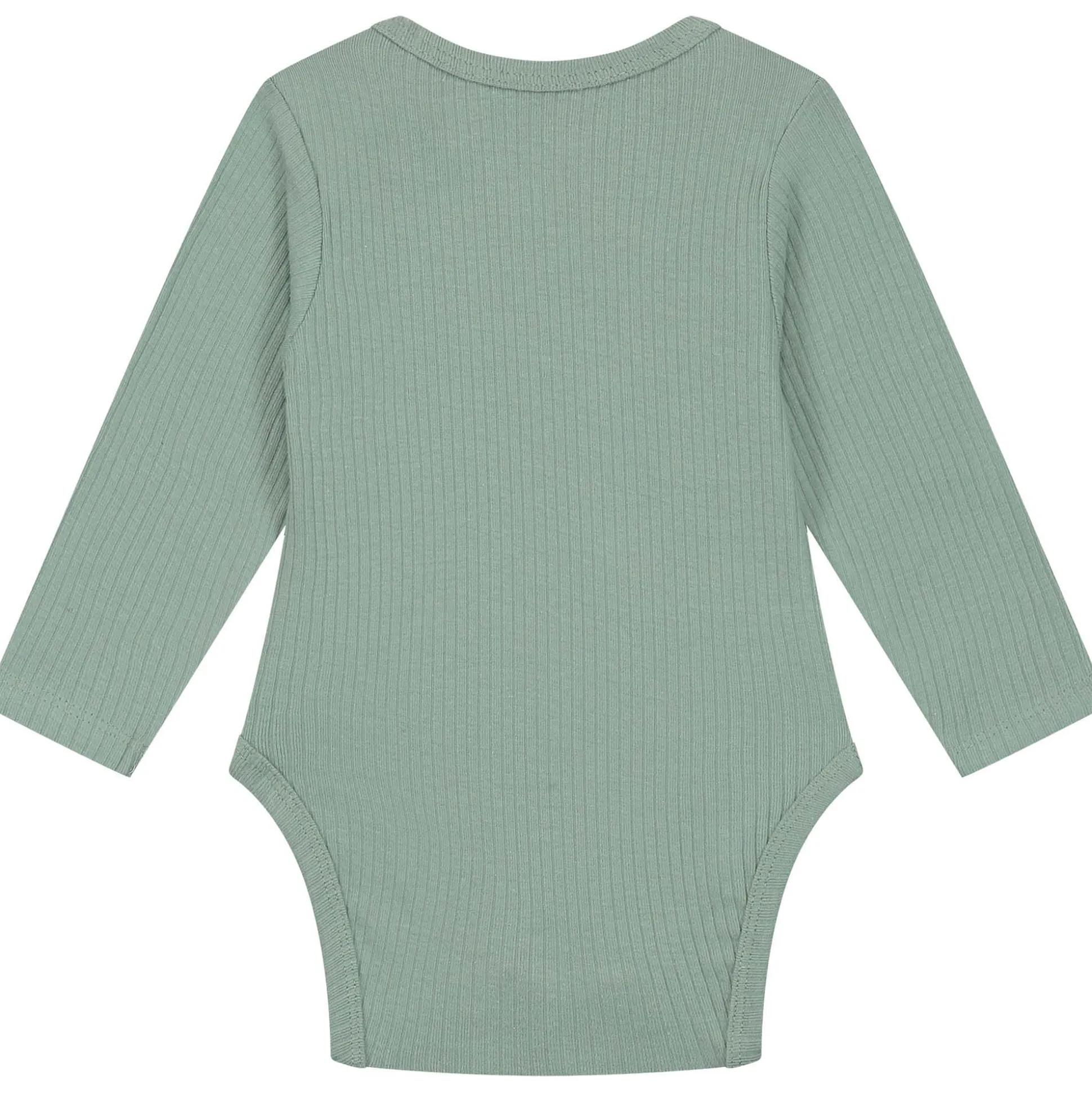 Deze Prénatal romper is gemaakt van biologisch katoen met een ribstructuur. De romper heeft een vergrijsd groene kleur en lange mouwen. Door de de envelophals en de drukknopen aan de onderzijde is het rompertje gemakkelijk aan en uit te trekken bij je kleintje. De romper is goed te combineren met de rest van de Prénatal collectie en is verkrijgbaar in de combinatiematen 50/56 t/m 86/92. Materiaal: 96% biologisch katoen en 4% elastaan. Binnenstebuiten wassen op maximaal 40 graden met gelijke kleuren.