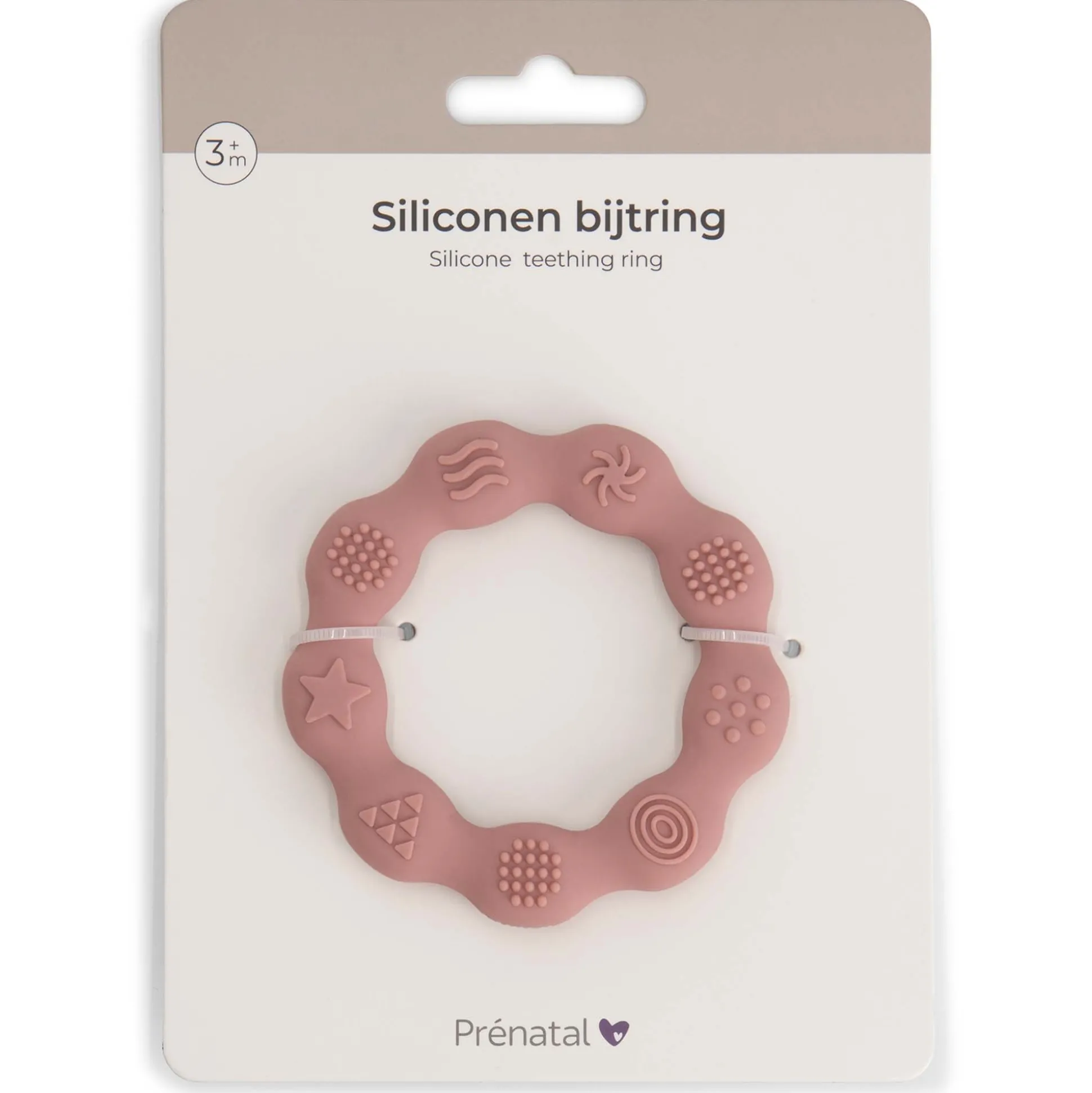 De siliconen bijtring uit de nieuwe Prénatal siliconen collectie verlicht het doorkomen van tandjes. Gemaakt van foodgrade siliconen en BPA-vrij. Het zachte en flexibele materiaal masseert het tandvlees en biedt verlichting bij doorkomende tandjes. Veilig, hygiënisch en eenvoudig schoon te maken in de bovenste lade van de vaatwasser. Een onmisbaar accessoire in de babytijd. Beschibaar in verschillende kleuren. Geschikt vanaf 0+ maanden. Aanbevolen is het product af te wassen voor gebruik.
