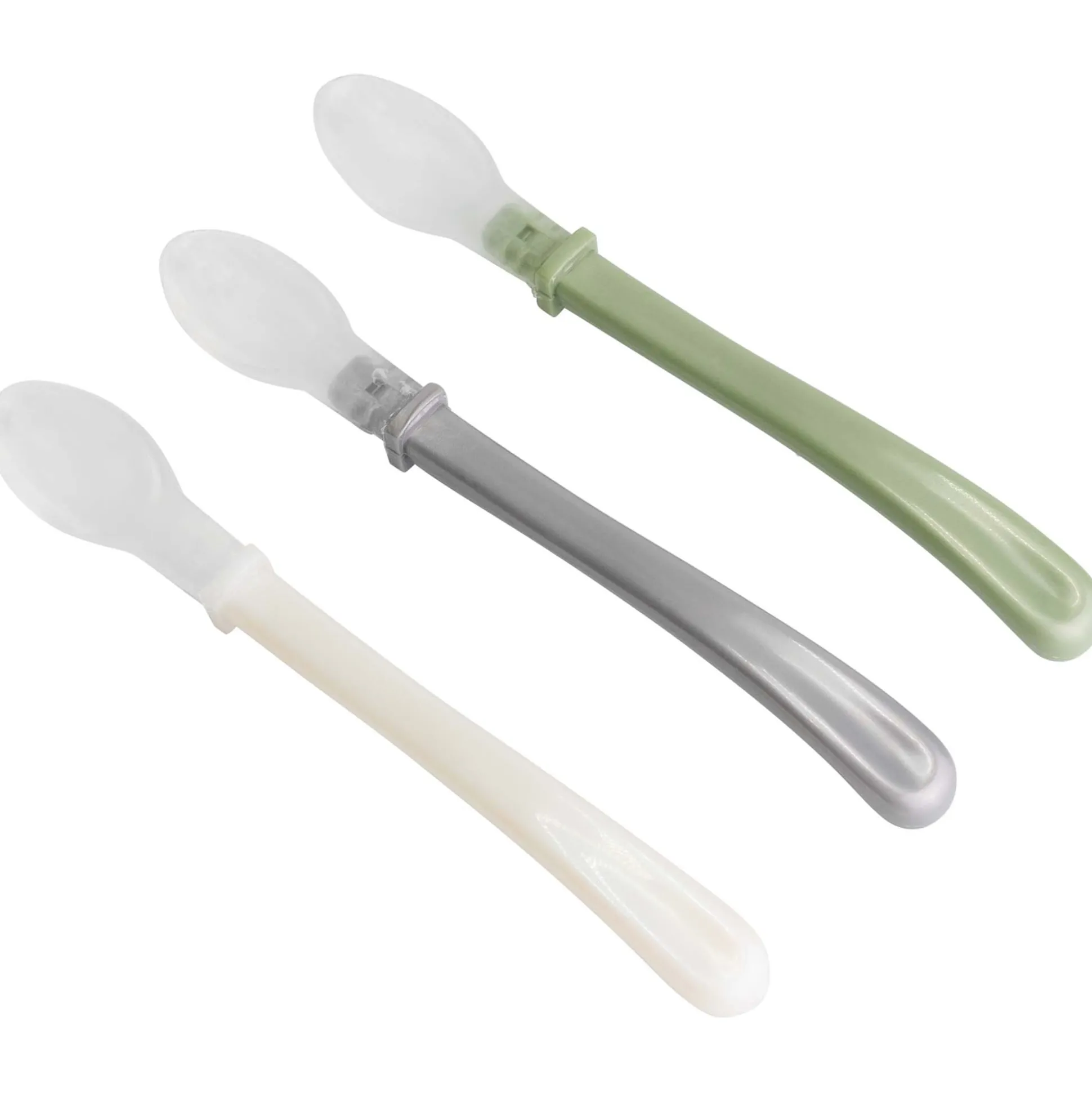 Deze Prénatal lepeltjes zijn perfect voor de eerste hapjes van je kindje. De lepeltjes hebben een zachte siliconen top waardoor het fijn aanvoelt voor je kleintje. De lepels worden per 3 stuks geleverd. De siliconen lepels kunnen in de vaatwasser, niet geschikt voor in de oven.