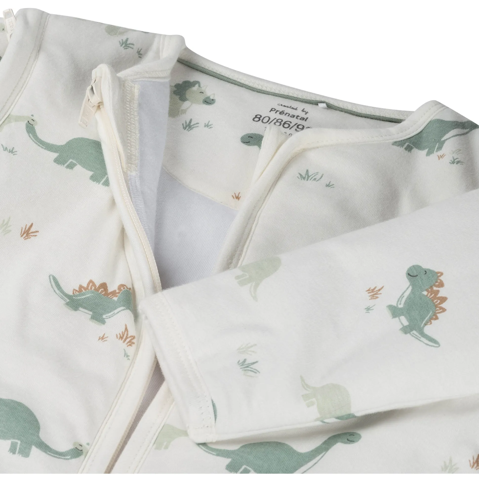 Deze Prénatal slaapzak is gemaakt van een zachte katoenen kwaliteit. De slaapzak is gevoerd en daardoor heerlijk voor de koudere momenten. De slaapzak heeft een mooie dino print. Deze fijne slaapzak heeft afritsmouwen waardoor hij gedragen kan worden als met en zonder mouwen. De slaapzak is goed te combineren met de rest van de Prénatal collectie en is verkrijgbaar in de maten 56/62 t/m 98/104/110. Binnenstebuiten wassen op 40 graden met gelijke kleuren. Kwaliteit: buitenstof 100% biologisch katoen, lining 100% biologisch katoen en voering 100% polyester. Wij adviseren om de slaapzak niet te drogen in de droger. De TOG-waarde van de slaapzak is 3,0.