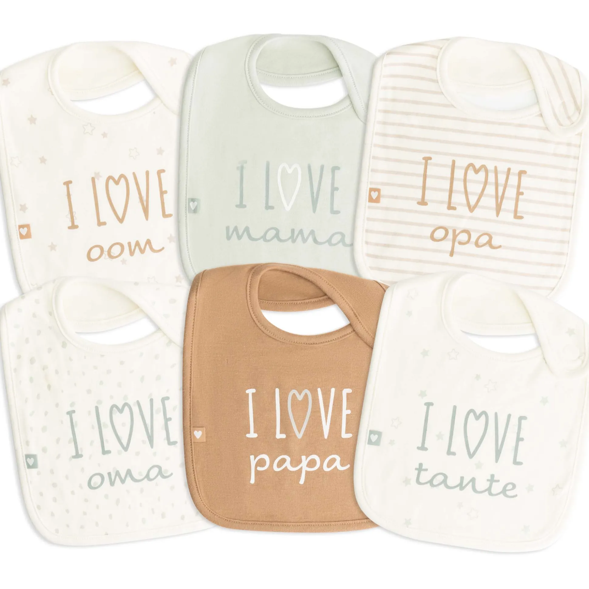 Deze leuke slab van Prénatal beschermt de kleren van je kleintje tijdens het eten. Het slabbetje voorkomt vlekken dus extra handig als je kleintje veel knoeit. Dankzij de klittenband sluiting bevestig je de slab snel een eenvoudig. De ”I love” slabjes zijn verkrijgbaar in Mama, Papa, Opa, Oma, Tante en Oom. De slab is gemaakt van 100% bio katoen en is wasbaar op 40 graden. In deze collectie zijn meerdere artikelen bij Prénatal verkrijgbaar. Ook leuk om kado te geven!