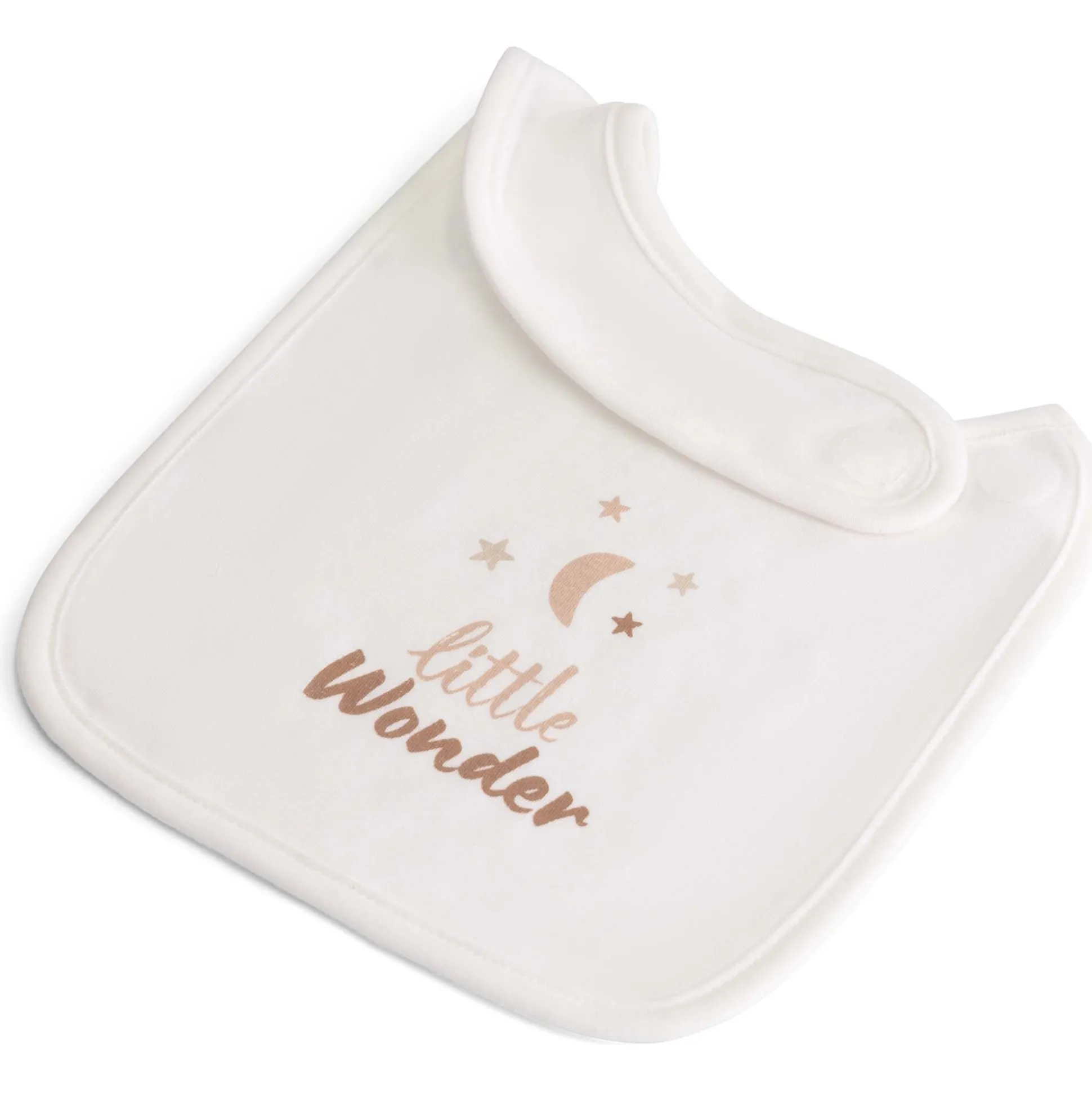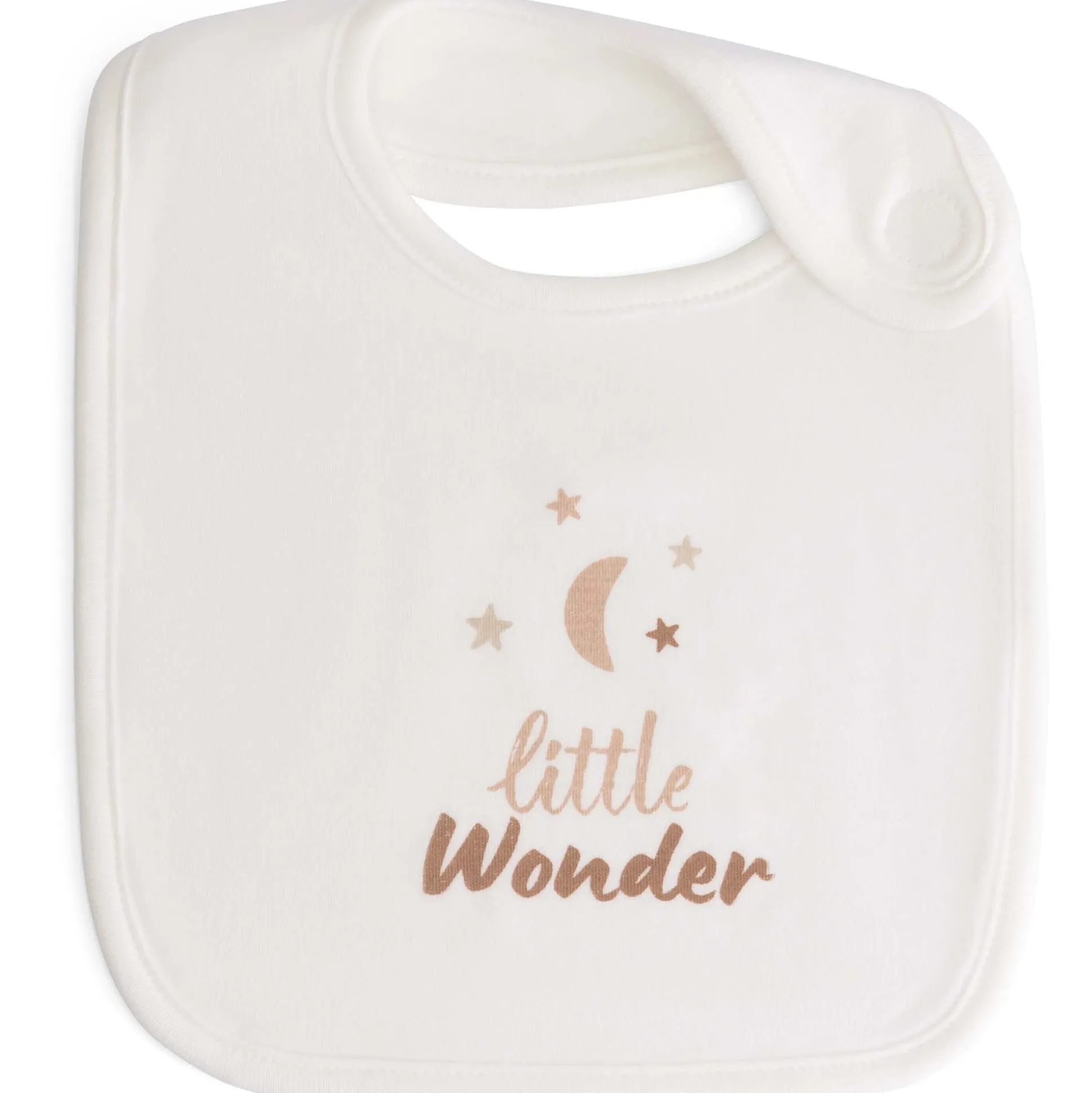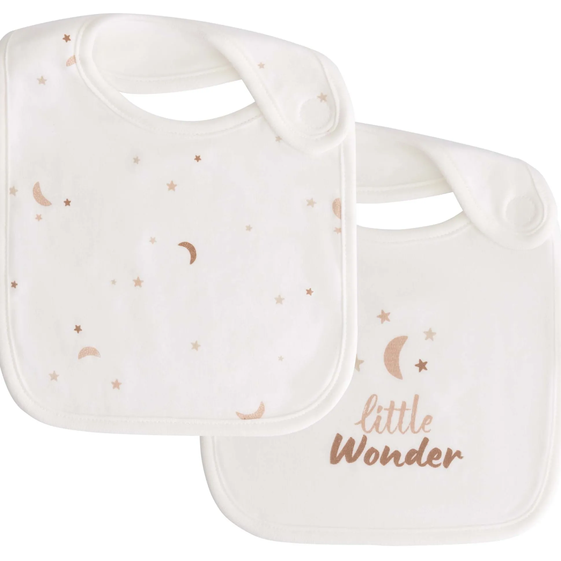 Deze lieve Prénatal slab wordt in een set van 2 geleverd. Eén van de slabs heeft de tekst ‘Little Wonder’ voorop staan en de ander is voorzien van een motief uit de Ster en Maan collectie. De slab wordt gesloten met klittenband. De slabs zijn gemaakt van 100% biologisch katoen en wasbaar op 40 graden.