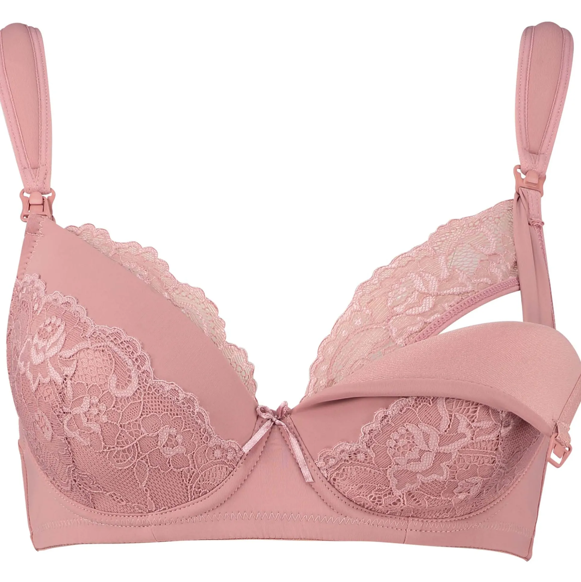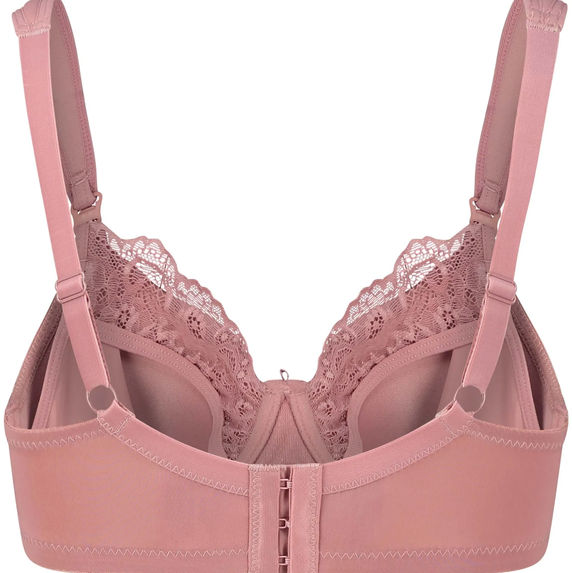 Prénatal voedingsbh. Deze voedingsbh van Prénatal is voorzien van een beugel en heeft voorgevormde cups. De voedingsbh is verkrijgbaar in een mooie oud roze tint en is mooi afgewerkt met kant bij de cups en daarnaast is er een bijpassende slip verkrijgbaar. De voedingsbh heeft voedingsclips aan de voorzijde, wat ideaal is bij het geven van borstvoeding. Daarnaast kun je de bh ook al dragen tijdens de zwangerschap vanwege het draagcomfort. De schouderbanden zijn zacht gevoerd en verstelbaar aan de achterzijde. De rugsluiting is viervoudig verstelbaar. Het model is verkrijgbaar van maat 75C t/m 95G. Samenstelling: 85% polyamide en 15% elastaan. Wasvoorschrift: handwas. Tip: om er zeker van te zijn dat je de juiste maat bestelt, bekijk hier onze maattabel.