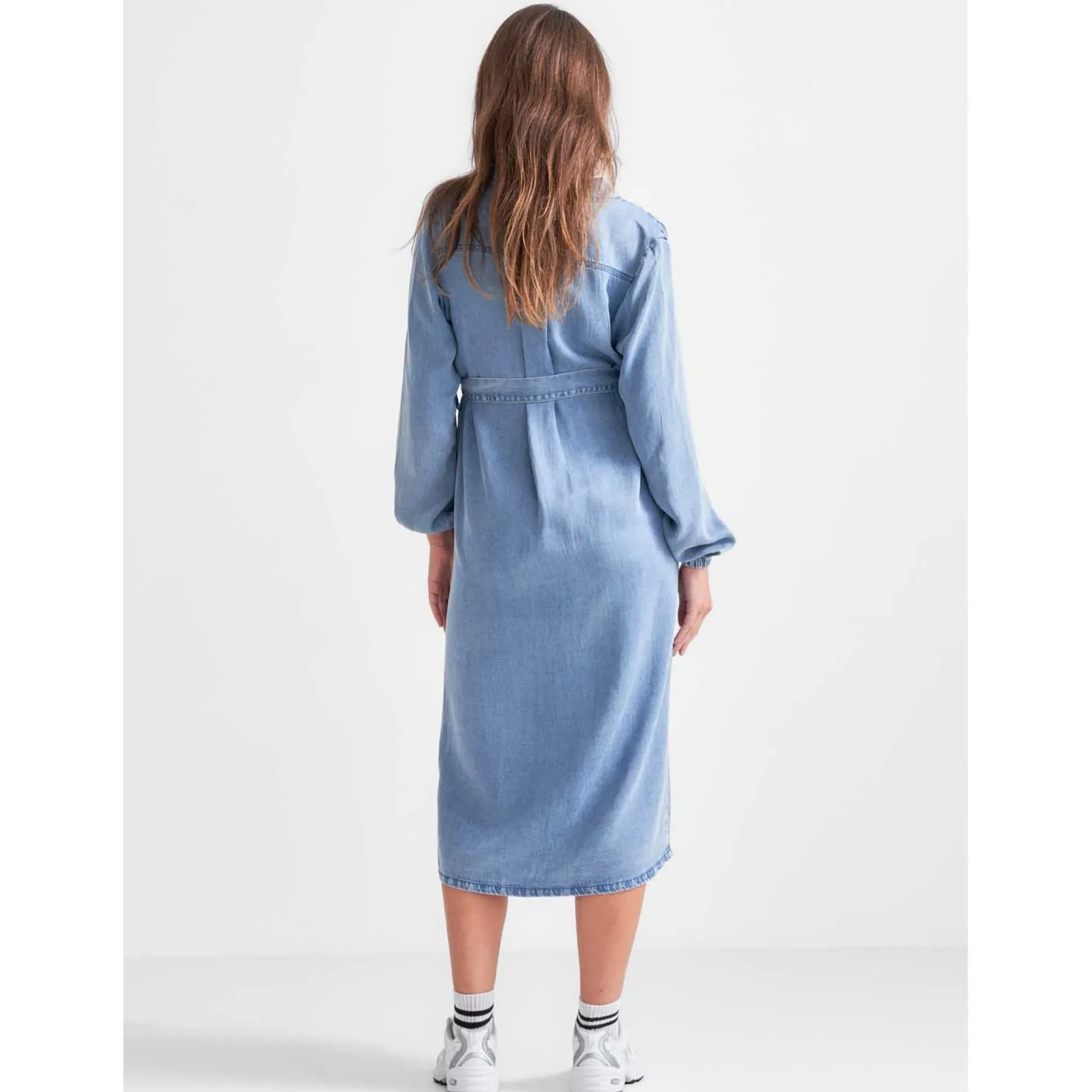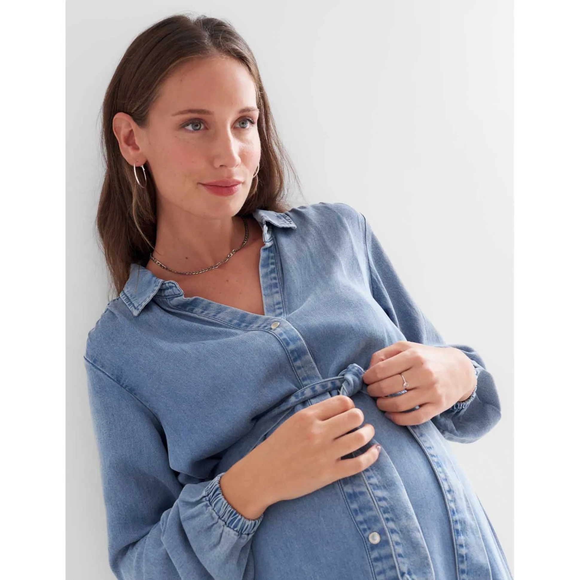Prénatal zwangerschapsjurk. Deze denimlook jurk heeft een lichte wassing en is grotendeels van soepelvallend lyocell gemaakt. De jurk heeft een doorlopende knoopsluiting wat voeden van je kleintje makkelijker maakt. De taille is afgewerkt met een strikceintuur om je zwangere buik mooi te accentueren. Combineer de jurk met blote benen of een panty uit de collectie van Prénatal. Verkrijgbaar in de maten XS t/m XXL. Samenstelling: 70% lyocell en 30% katoen. Wassen op 30 graden met gelijke kleuren.