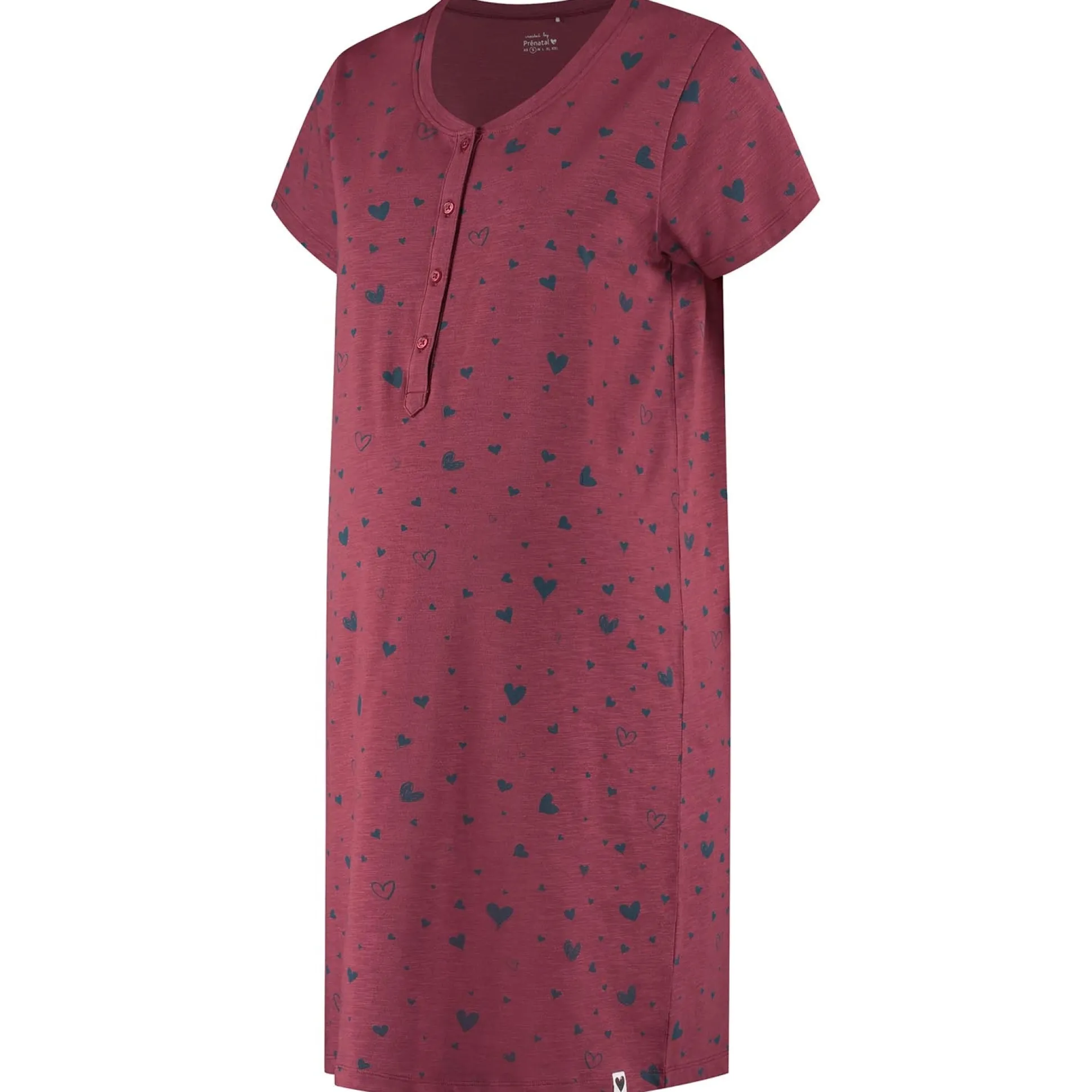Prénatal zwangerschapsnachtjapon korte mouwen hartjes rood