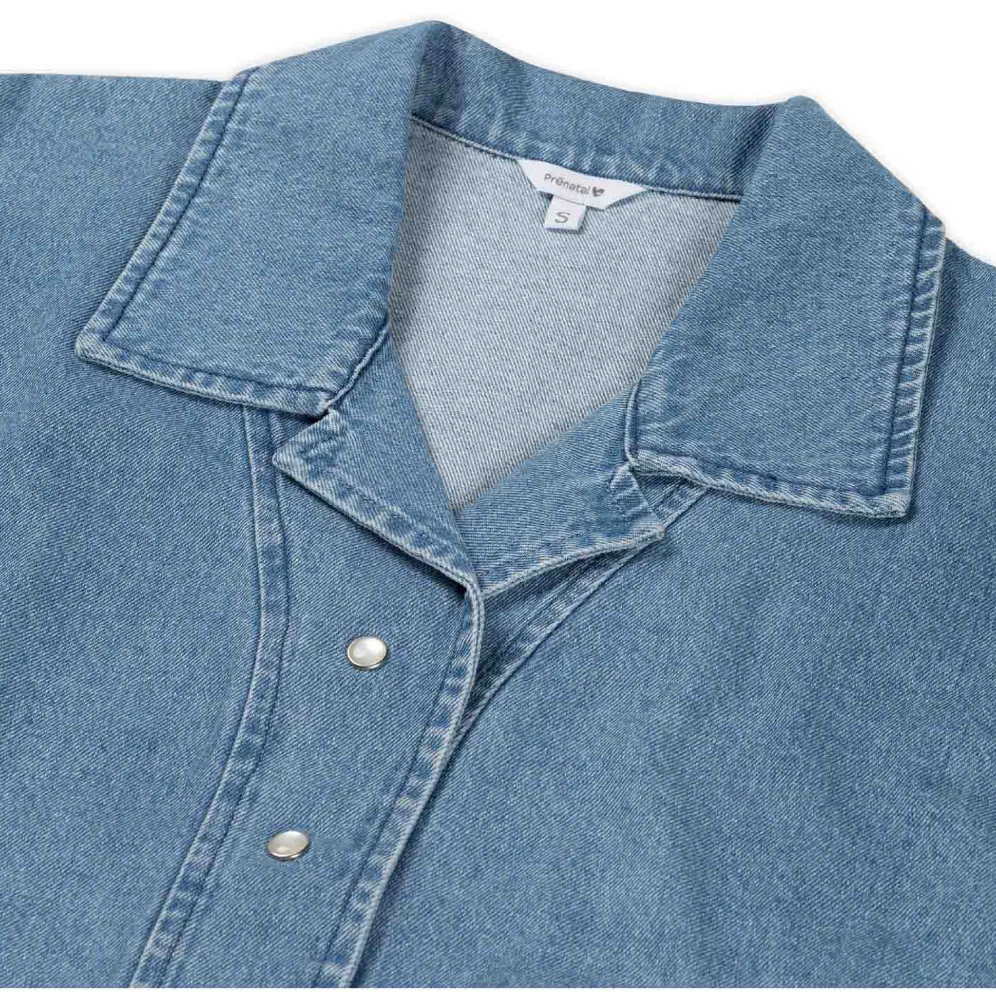 Prénatal zwangerschapsblouse. Deze denimblouse met lichte wassing is gemaakt van katoen. De blouse valt ruim en is aan de voorzijde korter, de mouwen vallen tot op de elleboog. De voorzijde is voorzien van een knoopsluiting met pearl drukknopen. Combineer de blouse met andere stijlen uit de collectie van Prénatal. Verkrijgbaar in de maten XS t/m XXL. Samenstelling 100% katoen. Wassen op 30 graden met gelijke kleuren.