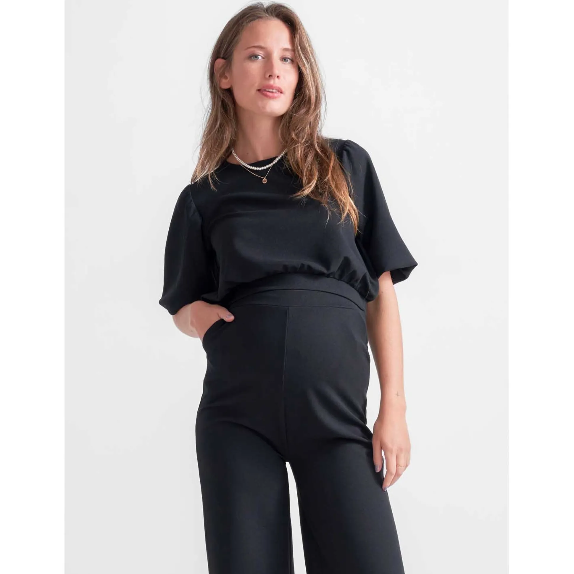Prénatal zwangerschapstop korte mouwen effen zwart