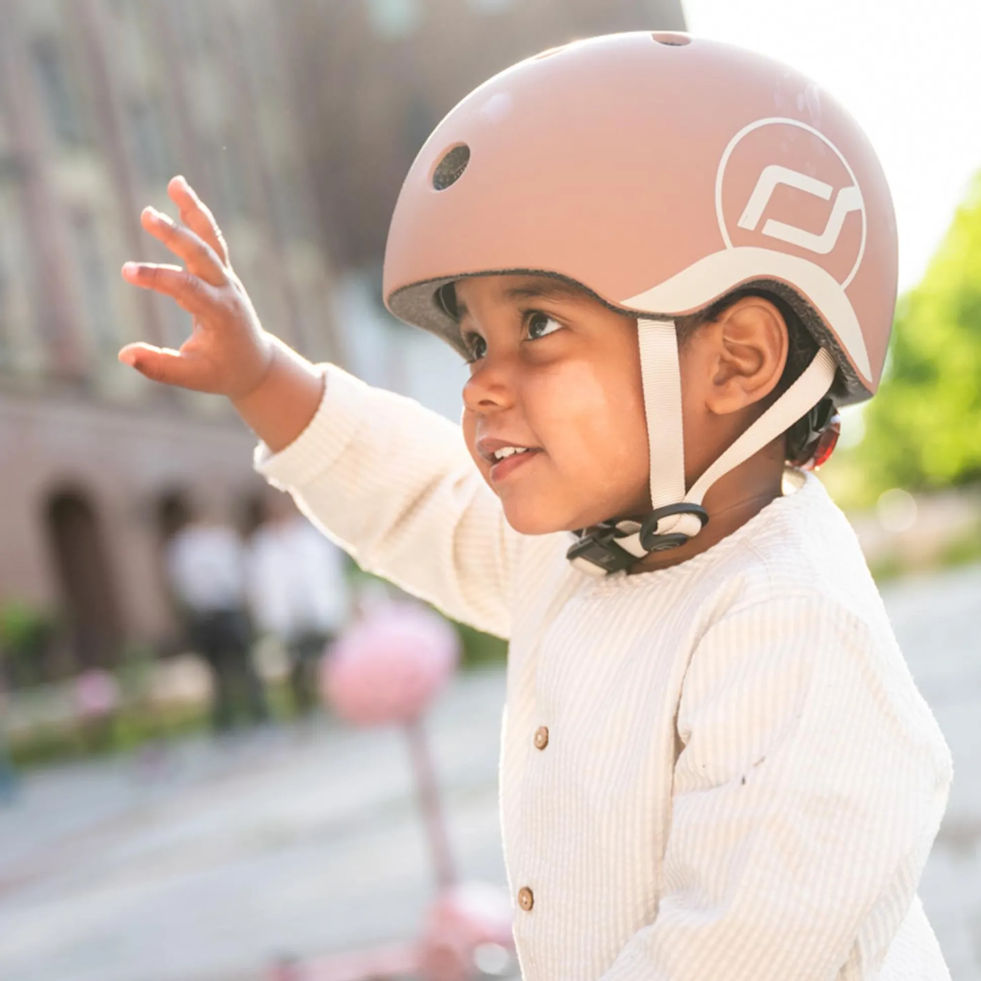 Je kindje gaat veilig op pad met zijn/haar (loop)fiets of step met deze kinderhelm van Scoot and Ride! Deze helm in maat XXS-S is geschikt voor kindjes vanaf ongeveer 1 tot 4 jaar en de helm is aanpasbaar aan het hoofdje van je kleintje. Met deze kinderhelm is het hoofd van je kleintje goed beschermd tegen een eventuele val. De helm blijft goed zitten op het hoofd van je kleintje met het veiligheidsriempje met magnetische sluiting. De helm is verstelbaar van 45 tot 51 cm. Daarnaast zit er op de achterkant van deze helm een LED lampje, wat ervoor zorgt dat je kleintje ook in de schemering gezien wordt. Door de ventilatiegaten die in deze helm zitten zal je kleintje het nooit te warm krijgen. Deze helm voldoet aan de EN1078 veiligheidsnorm en is volledig veilig in gebruik.