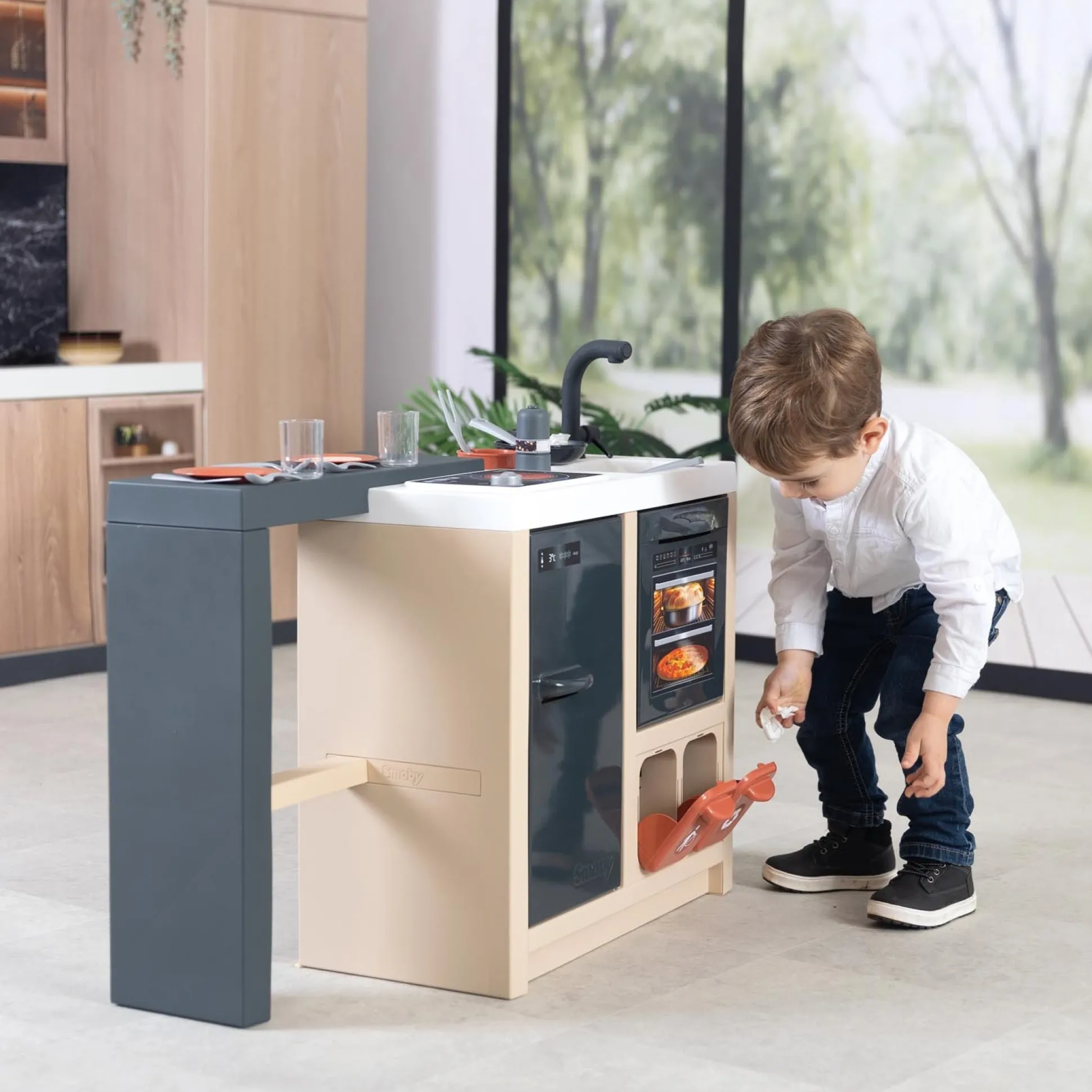 Met dit leuke keukentje van Smoby heeft jouw kindje een keukentje en kookeiland in 1! Het keukentje wordt geleverd inclusief accessoires: Kookpan, koekenpan, 2 bordjes met bestek en glazen, en etenswaren. Ook beschikt het keukentje over een koelkast, oven, een kraan en 2 vuilnisbakjes. Jouw kleine chef heeft alles beschikbaar om een mooie maaltijd te maken.
