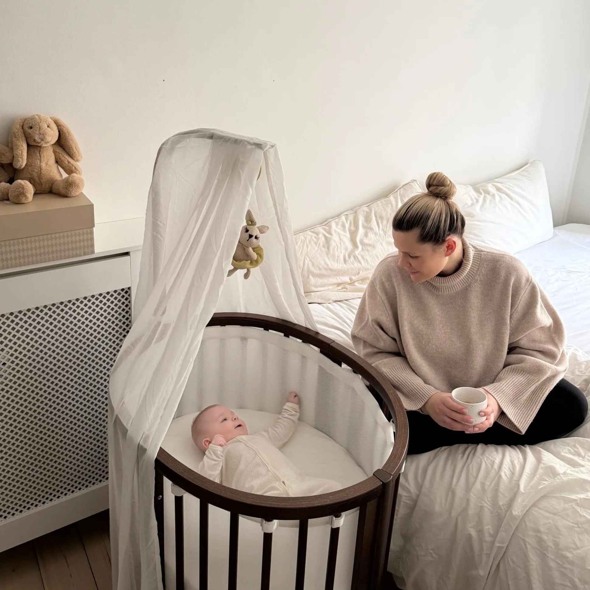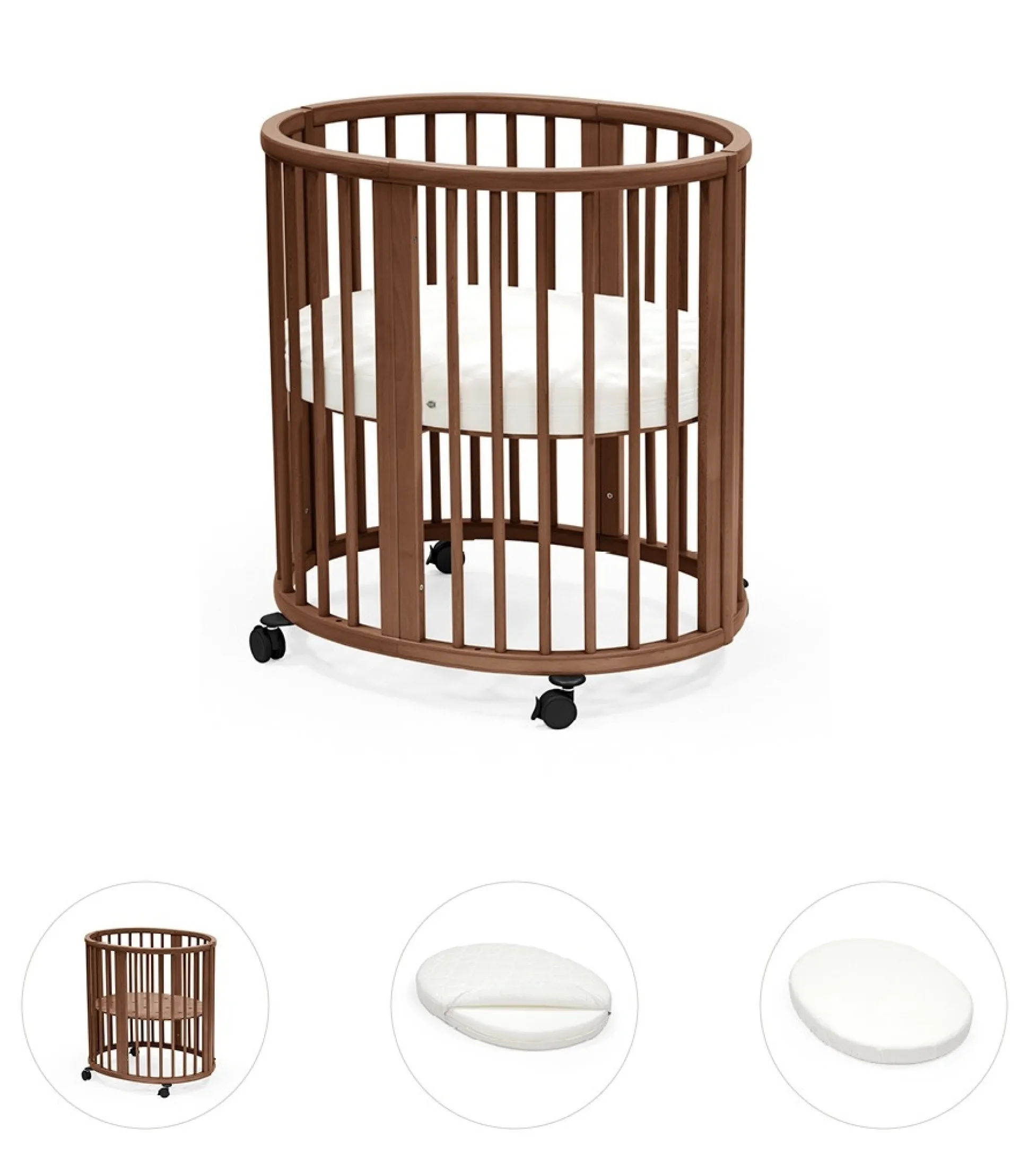 De Stokke Sleepi Mini is een heerlijke slaapplek voor je kindje. De ovale wieg is onderdeel van het Stokke sleepi 4-in-1 concept. De Sleepi Mini is de eerste stap van dit concept. De Stokke Sleepi Mini is te gebruiken vanaf de geboorte tot ongeveer zes maanden oud. Na deze zes maanden kan deze wieg worden uitgebreid naar een ledikant en vervolgens tot junior bed en speelbankje. Uiteindelijk is dit bedje te gebruiken tot ongeveer 10 jaar oud. De Stokki Sleepi Mini is in hoogte en lengte verstelbaar en beschikt over vergrendelbare zwenkwielen. Gebruik de wieg niet meer zodra je kindje zichzelf omhoog kan trekken, op zijn knieen gaat zitten of zelfstandig kan zitten. Lees voor gebruik de gebruiksaanwijzing.