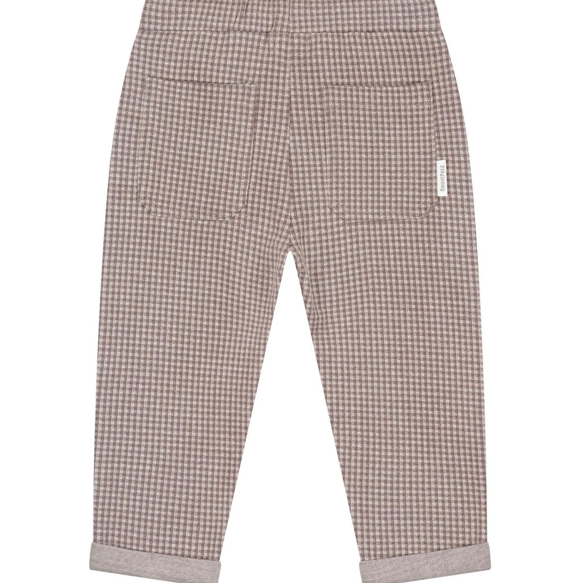 Deze Sweet Petit broek is gemaakt van een jacquard pied de poule kwaliteit. De broek heeft een koordje in de taille en een mooie bruine kleur met dessin. De broek is goed te combineren met de rest van de Sweet Petit collectie bij Prénatal. Verkrijgbaar in de maten 56 t/m 122. Kwaliteit: 86% katoen, 12% polyester en 2% elastaan. Binnenstebuiten wassen op 40 graden met gelijke kleuren.