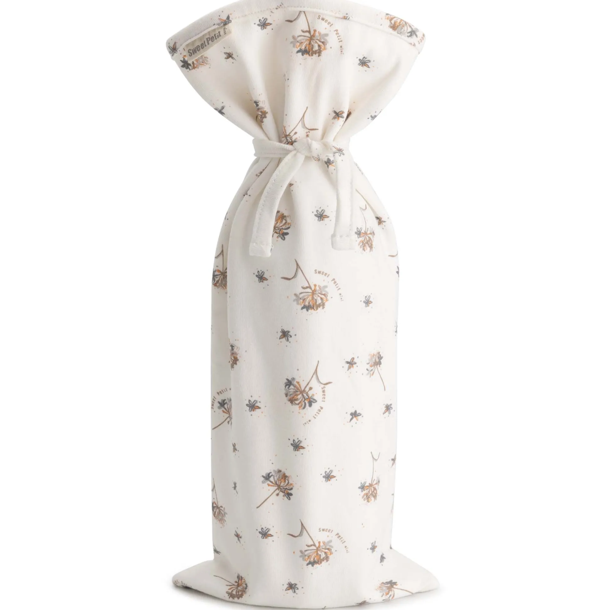 Deze mooie kruikenzak komt uit de Sweet Petit Mini by Prénatal collectie. De kruikenzak is gemaakt van 100% katoen en heeft een badstof binnenzijde. De zak heeft een alloverprint met bloemen. Dankzij de koordjes aan de bovenzijde is de kruikenzak eenvoudig te sluiten om een aluminium kruik. Kan gewassen worden in de wasmachine op 30 graden.