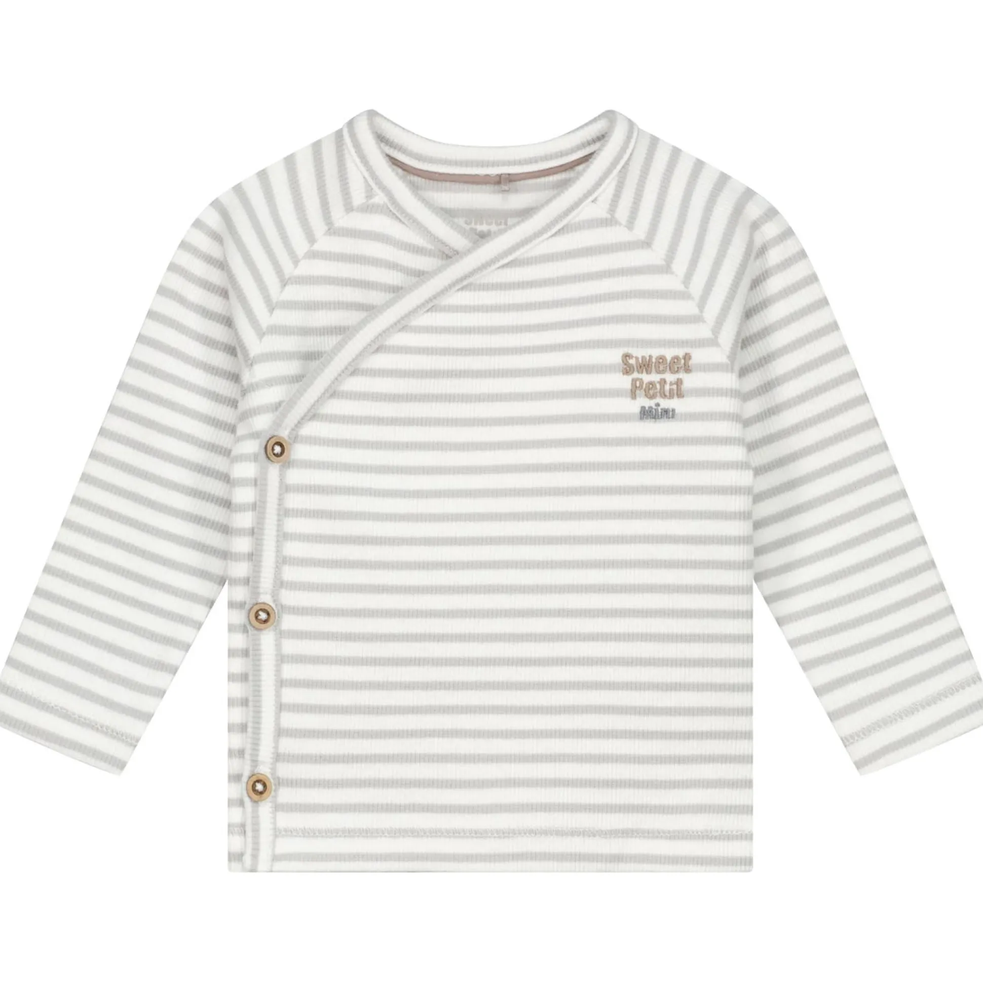 Sweet Petit Mini overslagshirt rib lange mouwen strepen beige