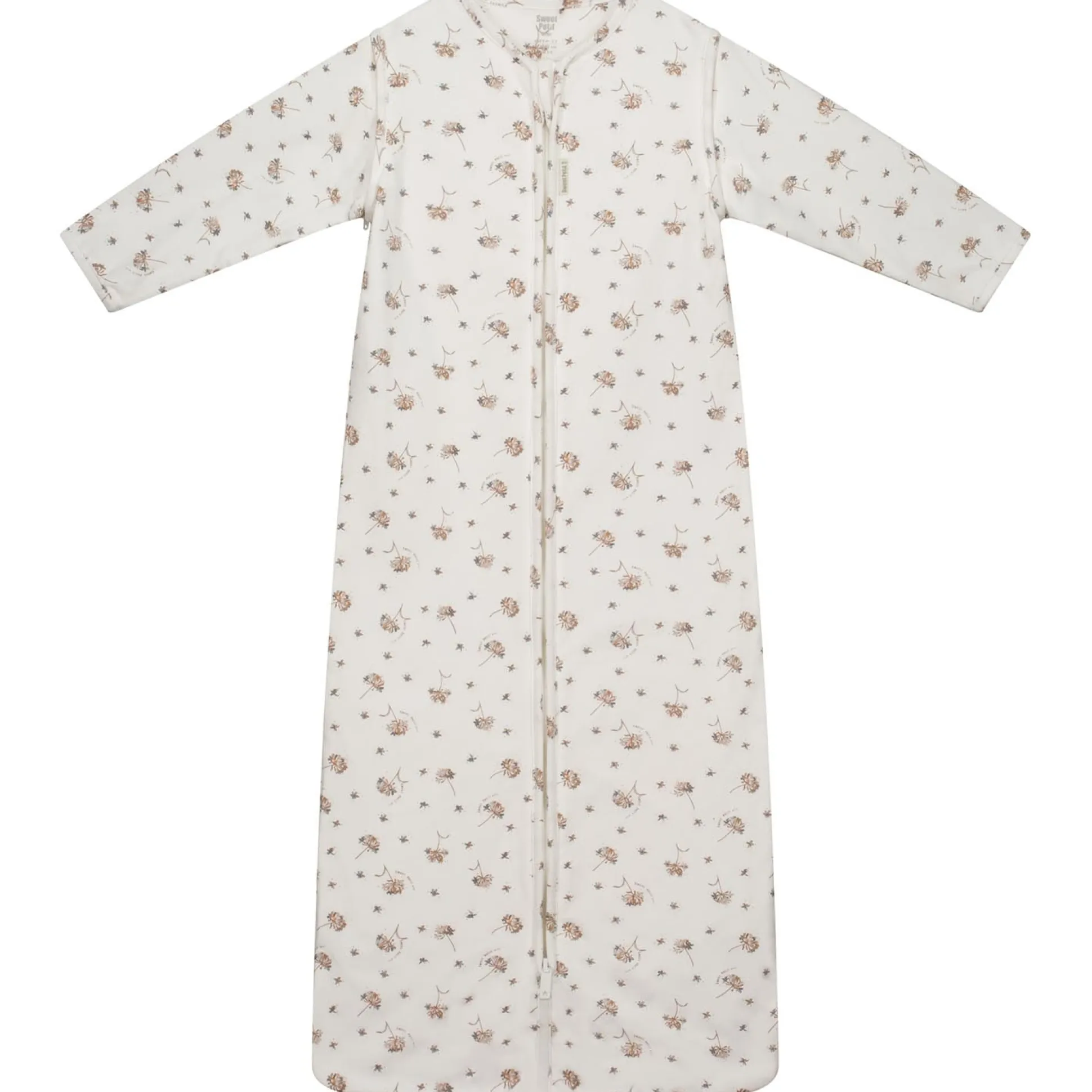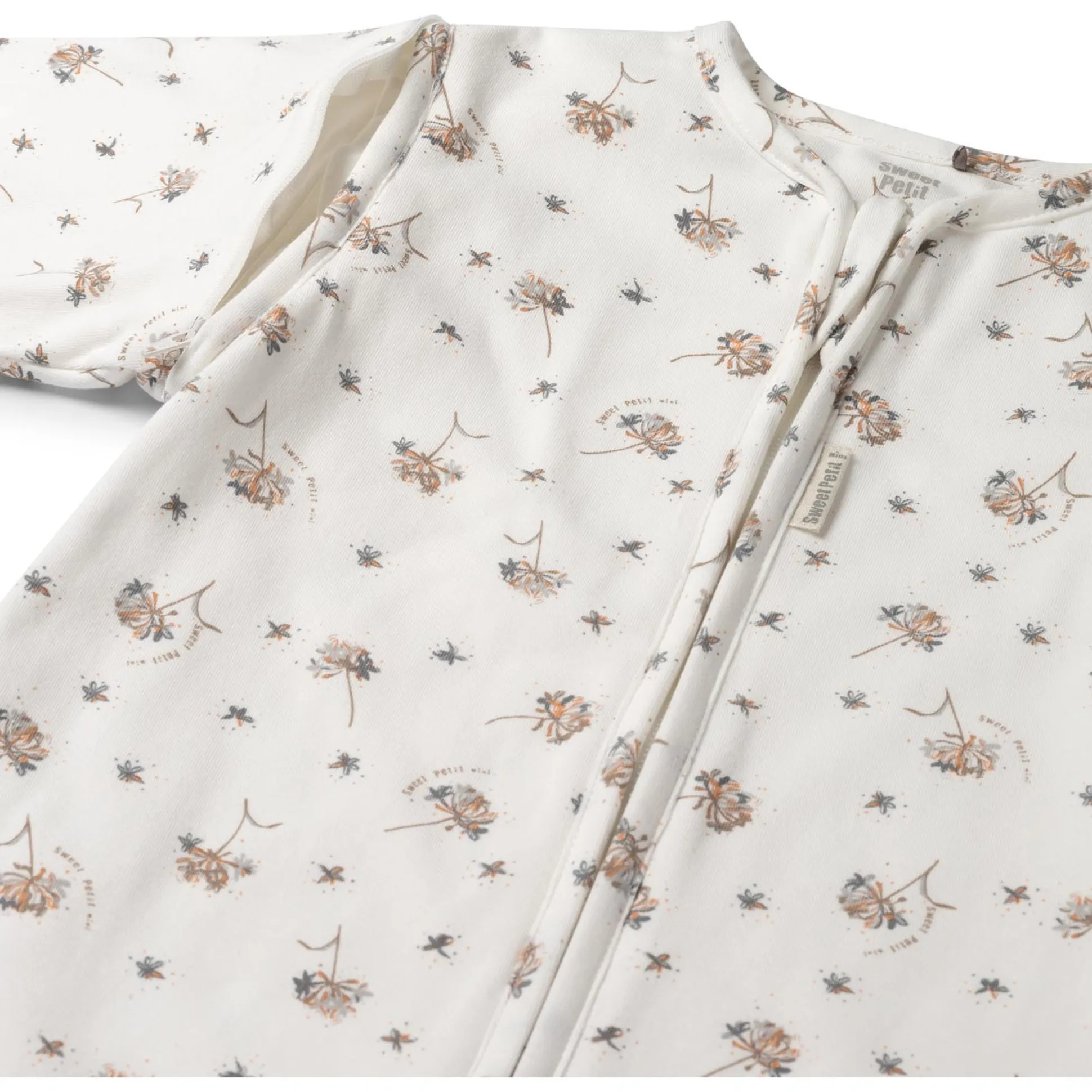 Deze Sweet Petit Mini slaapzak is gemaakt van zacht biologisch katoen. De slaapzak is niet gevoerd en heeft uitritsbare mouwen, dus lekker luchtig voor je kleintje. De slaapzak heeft een allover print met veldbloemen. De slaapzak is goed te combineren met de rest van de Sweet Petit Mini collectie bij Prénatal en is verkrijgbaar in de combinatiematen 56/62 t/m 98/104/110. Binnenstebuiten wassen op 40 graden met gelijke kleuren. Kwaliteit: 95% biologisch katoen en 5% elastaan. Wij adviseren om de slaapzak niet te drogen in de droger. De TOG-waarde van de slaapzak is 0,5 en daardoor perfect te gebruiken voor de lente t/m herfst!
