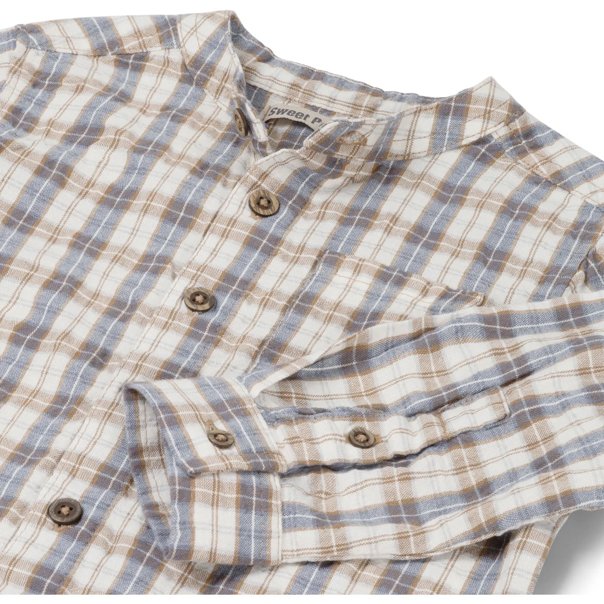 Deze Sweet Petit blouse is gemaakt van een fijne katoenen kwaliteit. De blouse heeft lange mouwen, een ronde hals en een knoopsluiting aan de voorzijde. Op de borst zit een zakje en de blouse is voorzien van een geruit dessin. De blouse is goed te combineren met de rest van de Sweet Petit collectie bij Prénatal. Verkrijgbaar in de maten 56 t/m 122. Kwaliteit: 60% katoen en 40% viscose. Binnenstebuiten wassen op 40 graden met gelijke kleuren. Dit product is getest op schadelijke chemicaliën en gecertificeerd volgens standaard 100 door OEKO-TEX® 23.HIN.84890 HOHENSTEIN HTTI.