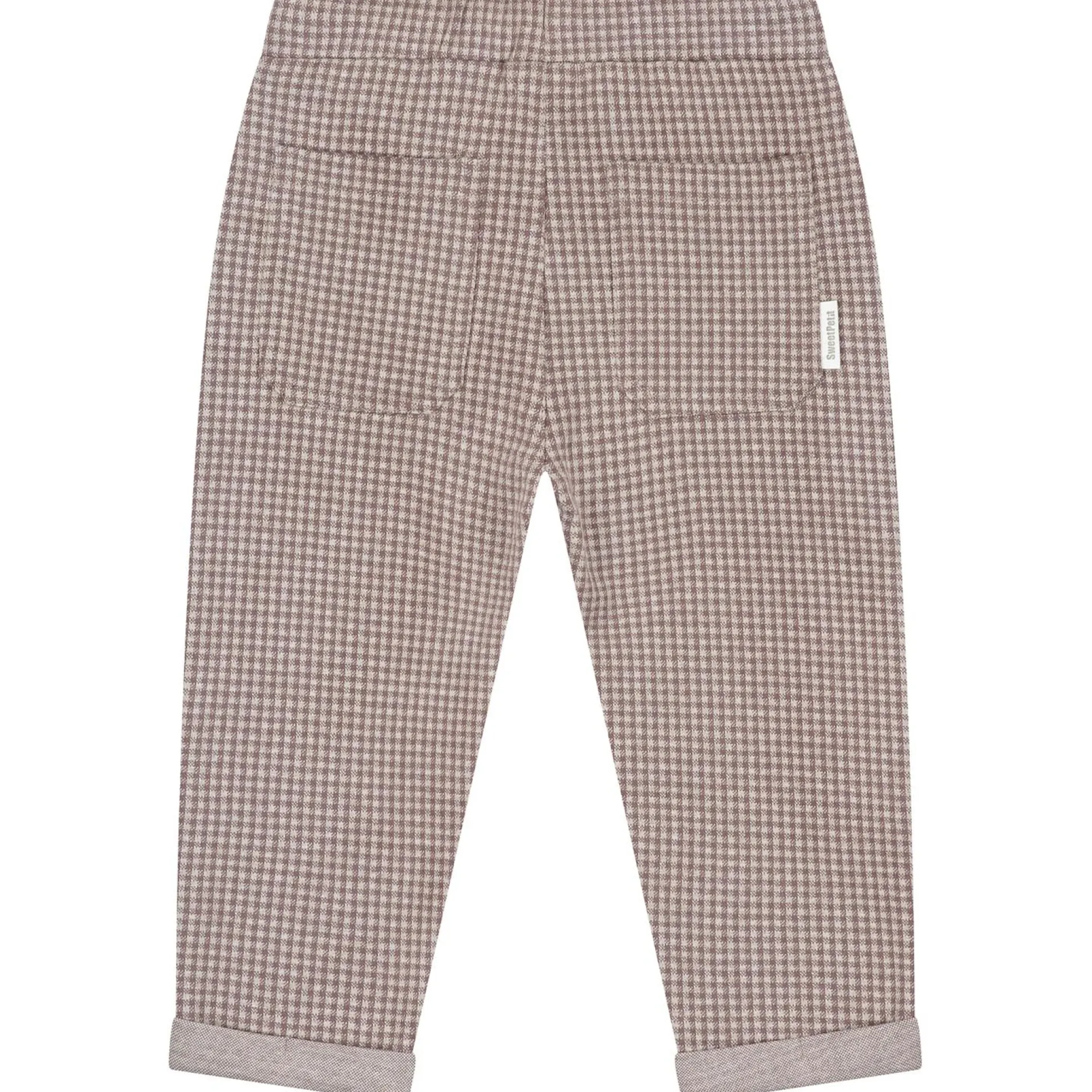 Deze Sweet Petit broek is gemaakt van een jacquard pied de poule kwaliteit. De broek heeft een koordje in de taille en een mooie bruine kleur met dessin. De broek is goed te combineren met de rest van de Sweet Petit collectie bij Prénatal. Verkrijgbaar in de maten 56 t/m 122. Kwaliteit: 86% katoen, 12% polyester en 2% elastaan. Binnenstebuiten wassen op 40 graden met gelijke kleuren.