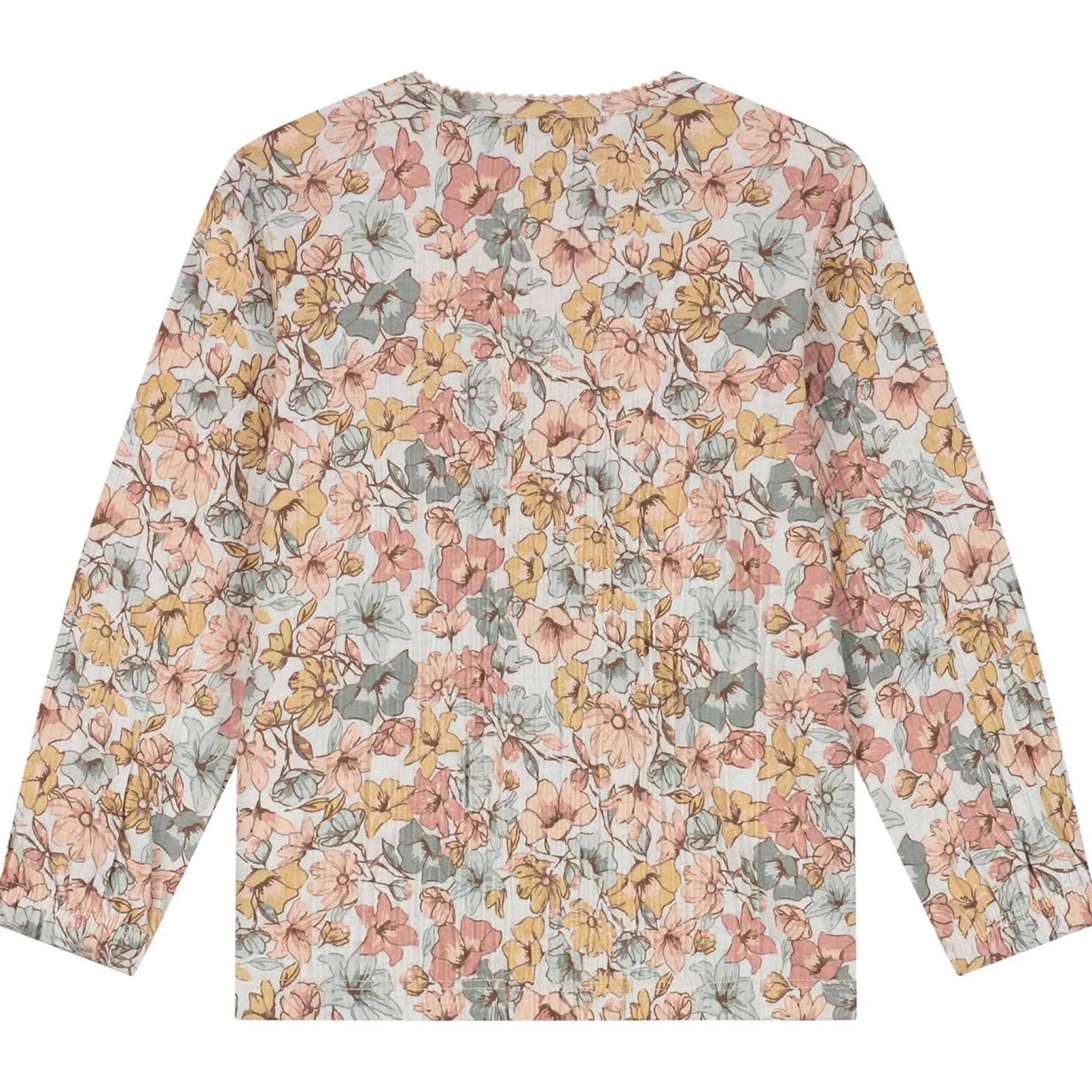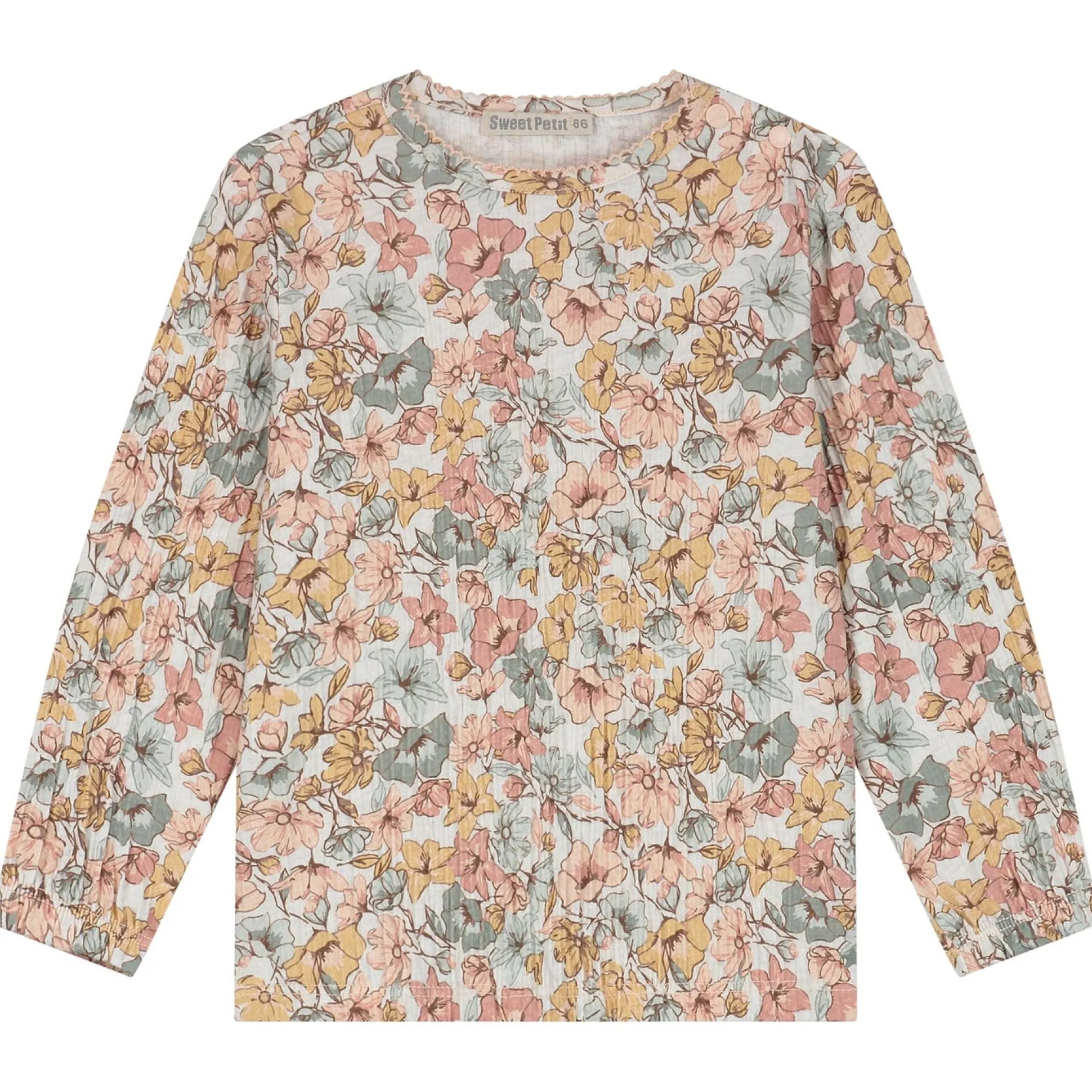 Sweet Petit peuter shirt Lin lange mouwen bloemen beige