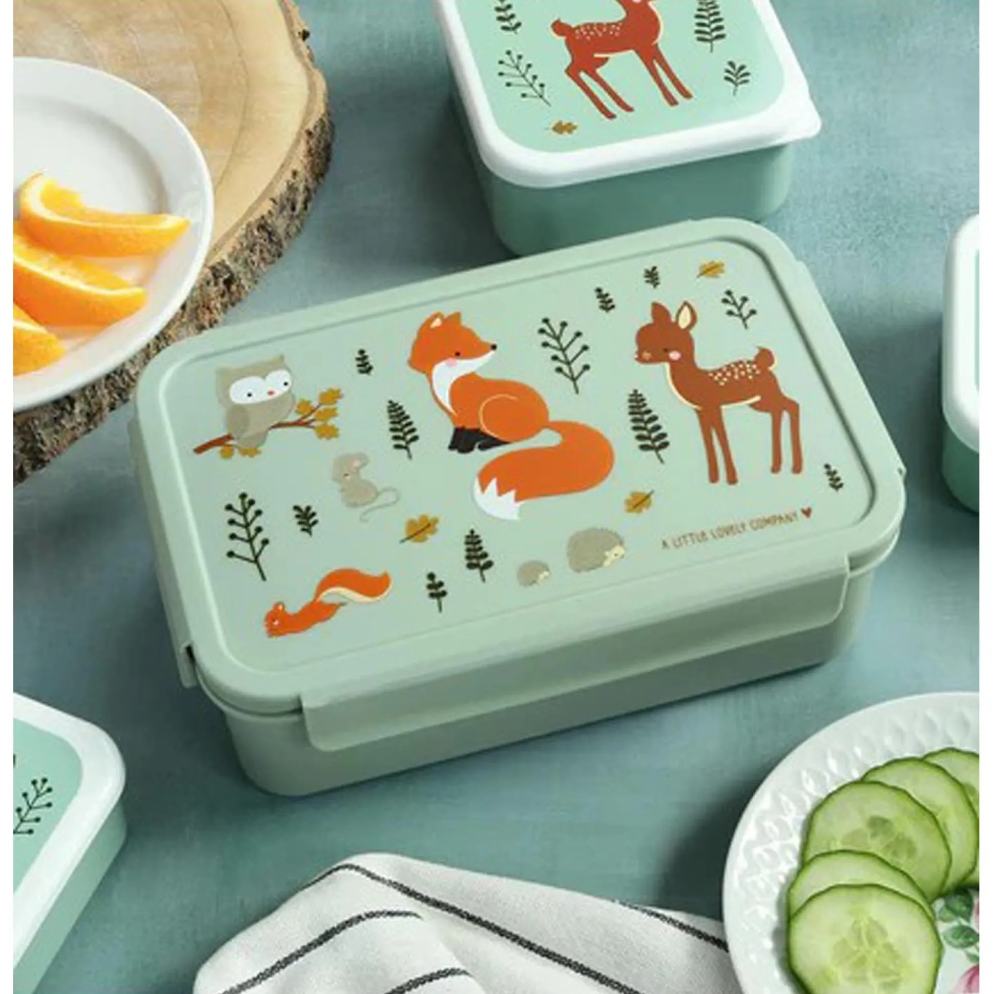 Deze ruime, mintgroene bento lunch box met bosvriendjes is ideaal voor een verse en gevarieerde lunch op school of onderweg. De luchtdichte click & close deksel en uitneembaar bento bakje met twee vakken zorgt voor een perfect georganiseerde lunch. Let op! Niet geschikt voor vaatwasser of magnetron.