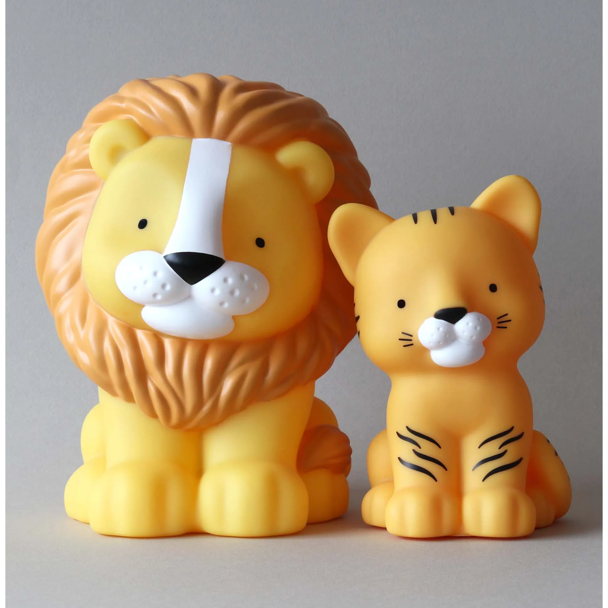 Dit kleine nachtlampje van a Little Lovely Company is een echte eyecatcher voor de babykamer. Het lampje geeft een zachte gloed waardoor hij perfect is als nachtlampje om bij in slaap te vallen. In het lampje zit een LED-lamp waardoor hij niet heet wordt. Je kindje kan hem dus rustig mee in bed nemen. Het nachtlampje werkt op batterijen (niet bijgeleverd). Dankzij de slimmer timer optie schakelt het lampje na 15 minuten automatisch uit. Het lampje is in de vorm van een stoere tijger
