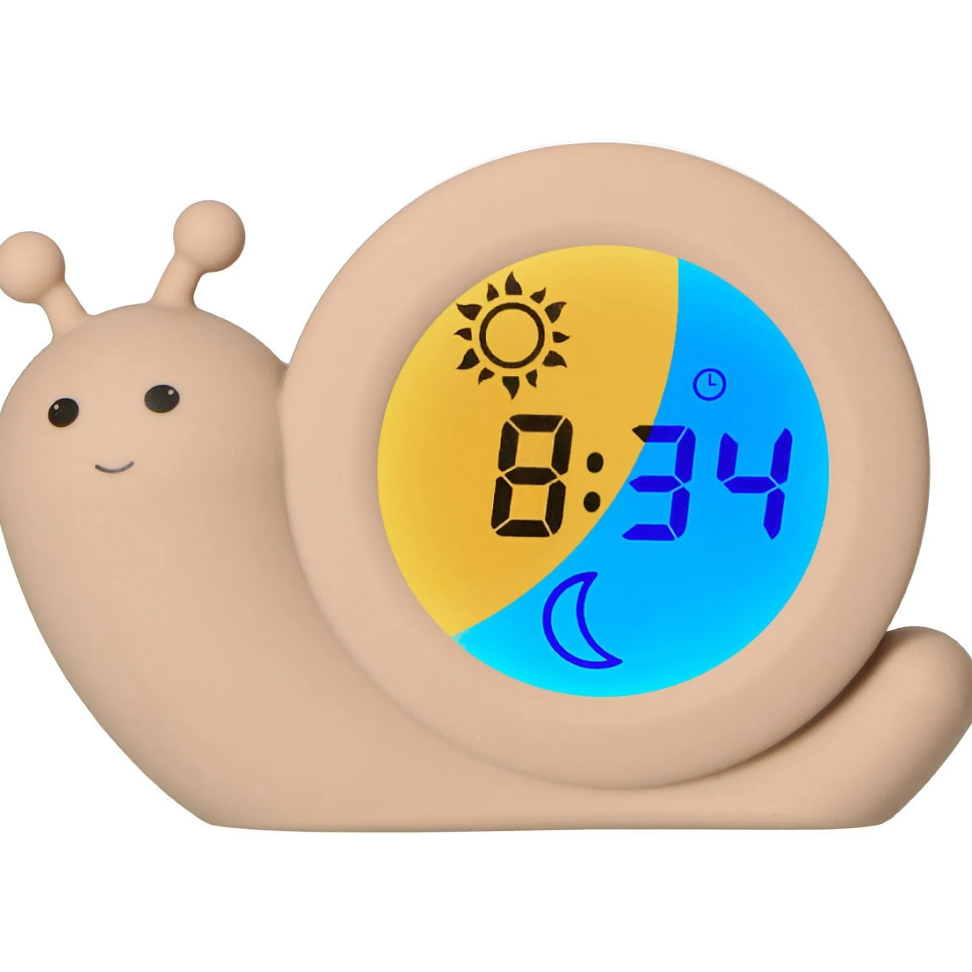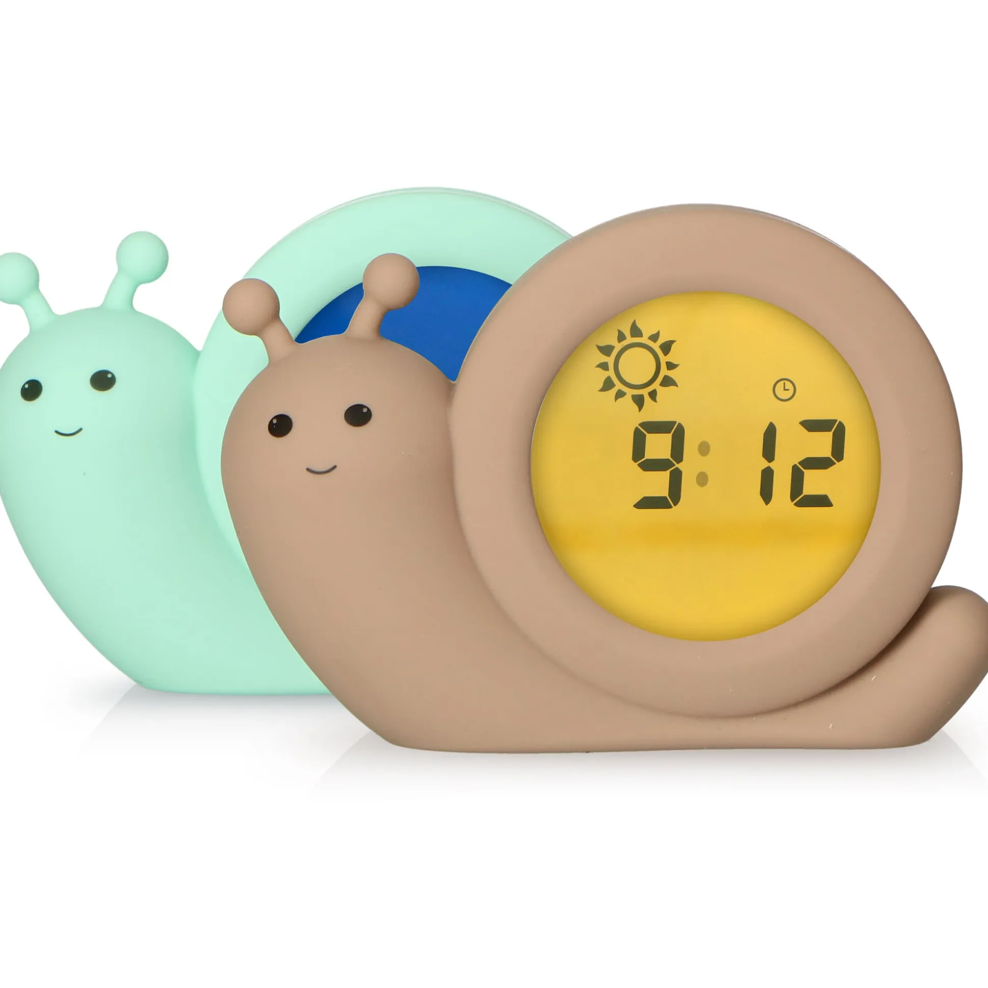 De BC110GN SIMON van Alecto Baby is een 3-in-1 slaaptrainer, wekker én nachtlampje. En dat in de vorm van een vriendelijk slakje, Simon genaamd. Deze slaaptrainer helpt kleinere kindjes met het krijgen van tijdsbesef. Als ouder stel je in wanneer het tijd is om op te staan. Het display is ’s nachts blauw en toont een maantje. Hét teken om in bed te blijven. Is het tijd om op te staan? Het display van de BC110GN SIMON wordt oranje en laat een zonnetje zien. De BC110GN SIMON wordt geleverd met een extra lange oplaadkabel (200 cm), maar is ook oplaadbaar en daardoor ook mee te nemen en draadloos te gebruiken.