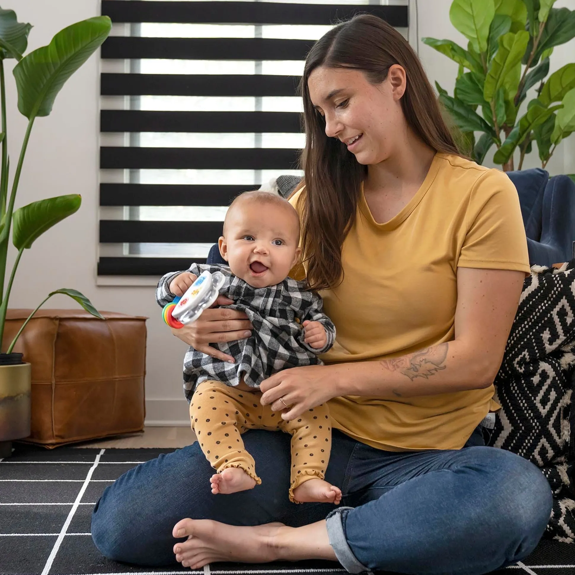 Je kindje zal schudden, schuiven en glimlachen tijdens hun muzikale ontdekkingstocht met de Tiny Tambourine Muziekspeelgoed en Rammelaar van Baby Einstein. Met echte belletjes en een schuivende kralenbaan helpt deze kleine, handzame tamboerijn bij het ontwikkelen van fijne motoriek zoals behendigheid, en versterkt het het begrip van oorzaak en gevolg via muzikaal spel. Licht van gewicht en gemakkelijk zelfstandig vast te houden door je kindje, maken de zachte belletjes ouders blij terwijl baby thuis of onderweg muziek maakt. Met populaire figuren zoals Roxy het Roodborstje, Cal de Rups en Opus de Octopus uit de Baby Einstein-video’s, stimuleert de kleurrijke kralenbaan de zintuigen van je baby. De tamboerijn is eenvoudig schoon te maken met een vochtige doek.