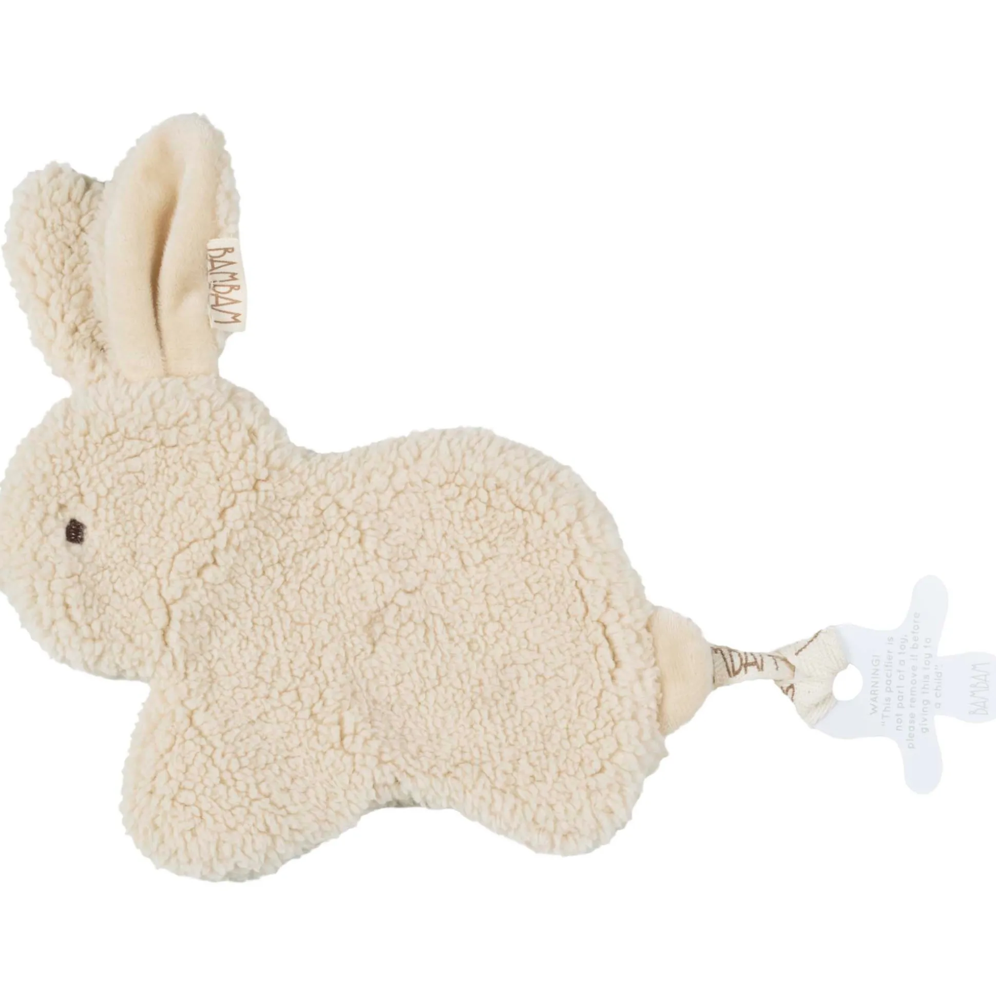 Dit lieve knuffeldoekje in de vorm van een konijntje van BamBam is gemaakt van gerecycled materiaal dat ook nog eend heerlijk zacht aanvoelt. Aan het korte koortje kan een speentje gebonden worden waardoor deze niet zo snel kwijt raakt. Leuk om cadeau te doen bij een kraambezoek of babyshower.