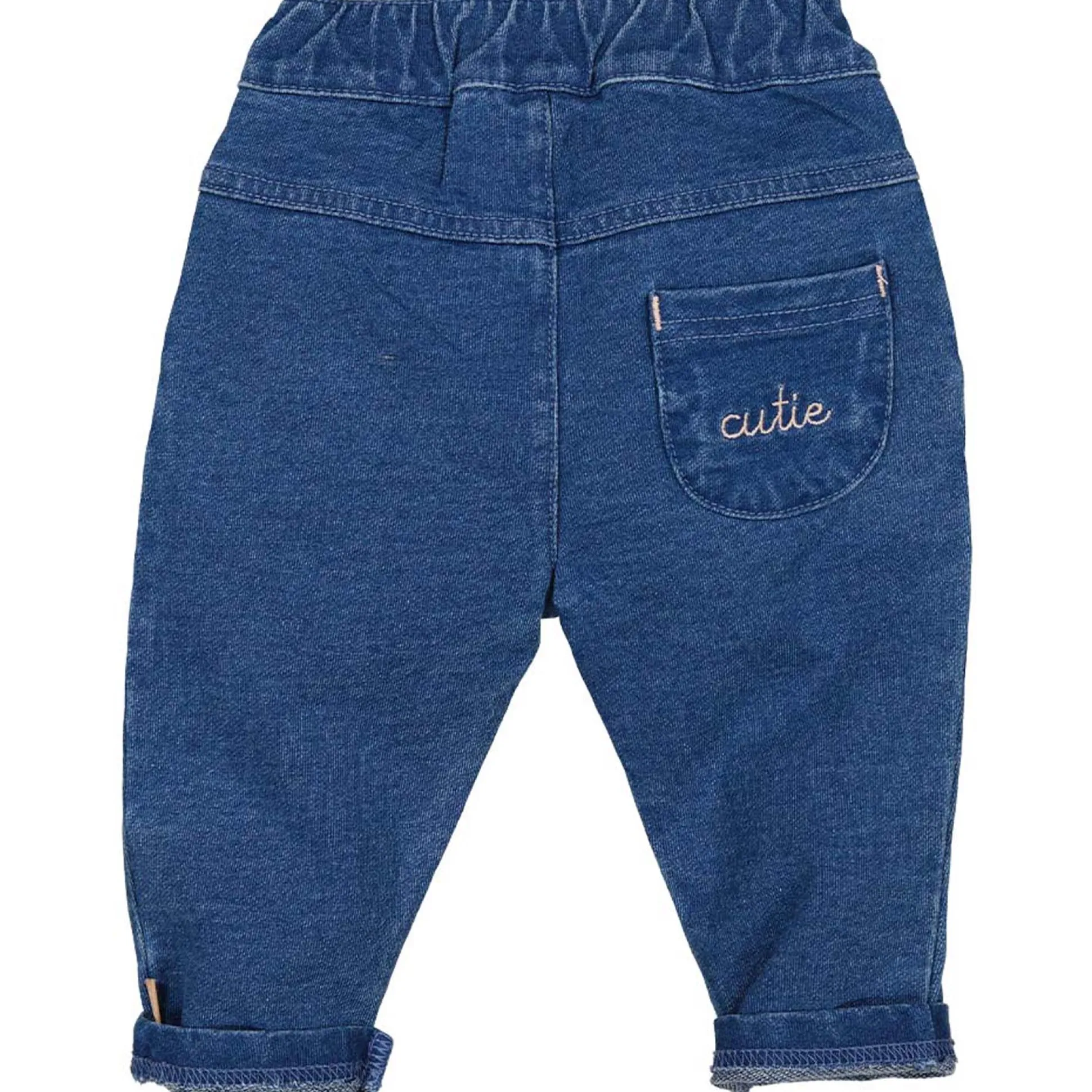 Deze Bess broek is gemaakt van een mooie jogdenim kwaliteit. Deze broek heeft een aansluitende pasvorm bij de benen met elastische boord aan de bovenkant met knoopsluiting waardoor deze makkelijk aan en uit te doen is bij uw kindje. Deze broek heeft aan de bovenkant een deelnaad met kleine plooien en zakken. Deze broek is voorzien van een effen kleur en is goed te combineren met de rest van de Bess collectie bij Prénatal. Verkrijgbaar in de maten 56 t/m 80. Kwaliteit: 95% katoen, 5% elastaan. Binnenstebuiten wassen op 40 graden met gelijke kleuren.