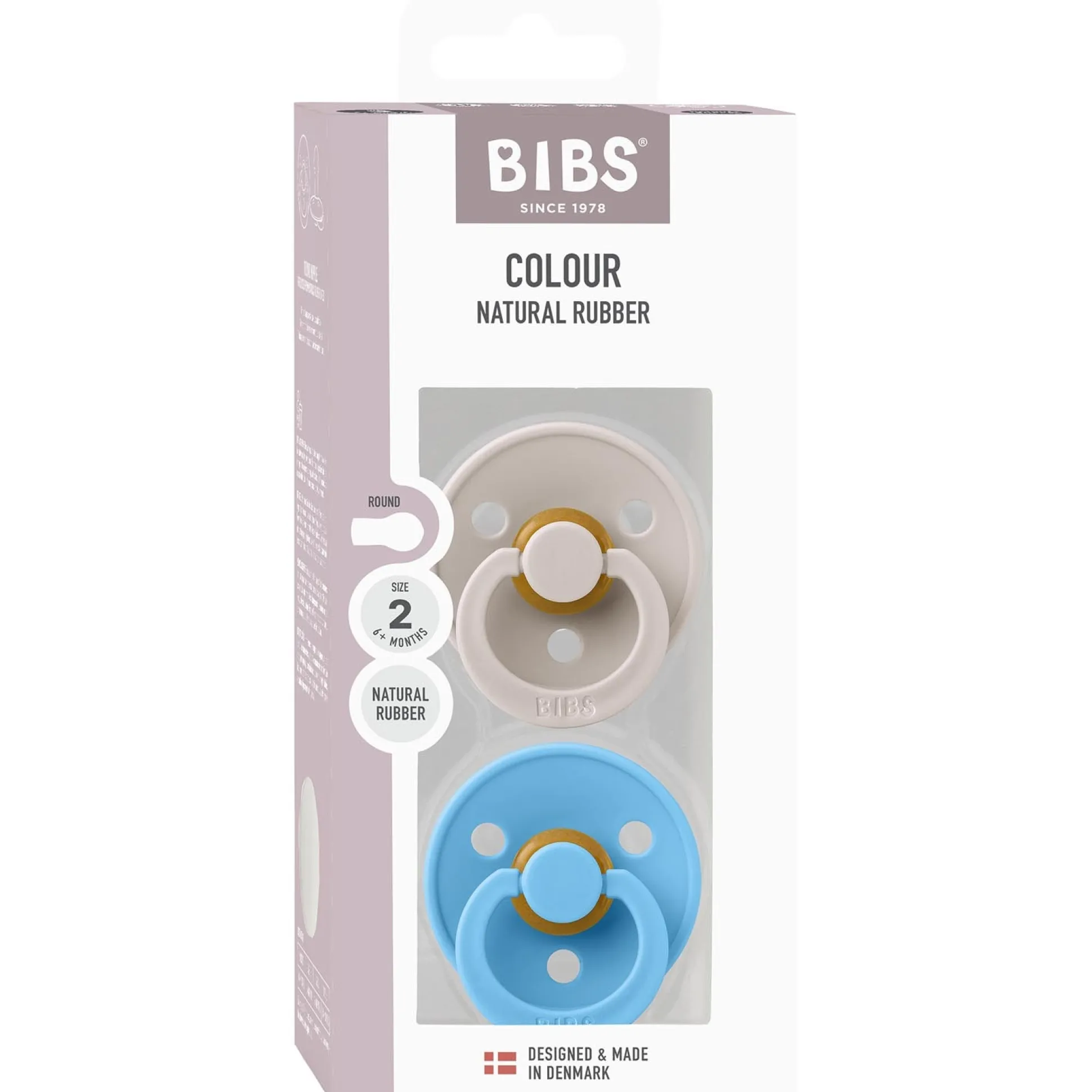 De BIBS fopspeen lijkt door de ronde vorm op de tepel van de moeder. Hierdoor is sprake van een vergelijkbare tongplaatsing en zuigtechniek als bij borstvoeding. De fopspeen bevat drie ventilatiegaten waardoor jouw kindje genoeg lucht binnen krijgt. Het advies is om de fopspeen om de 4-6 weken te vervangen vanwege hygiënische redenen. De BIBS fopspenen zijn 100% BPA en PVC vrij en zijn gemaakt van natuurrubber. Deze verpakking bevat twee spenen in maat 2 (6-18 Maanden) verkrijgbaar in meerdere kleuren