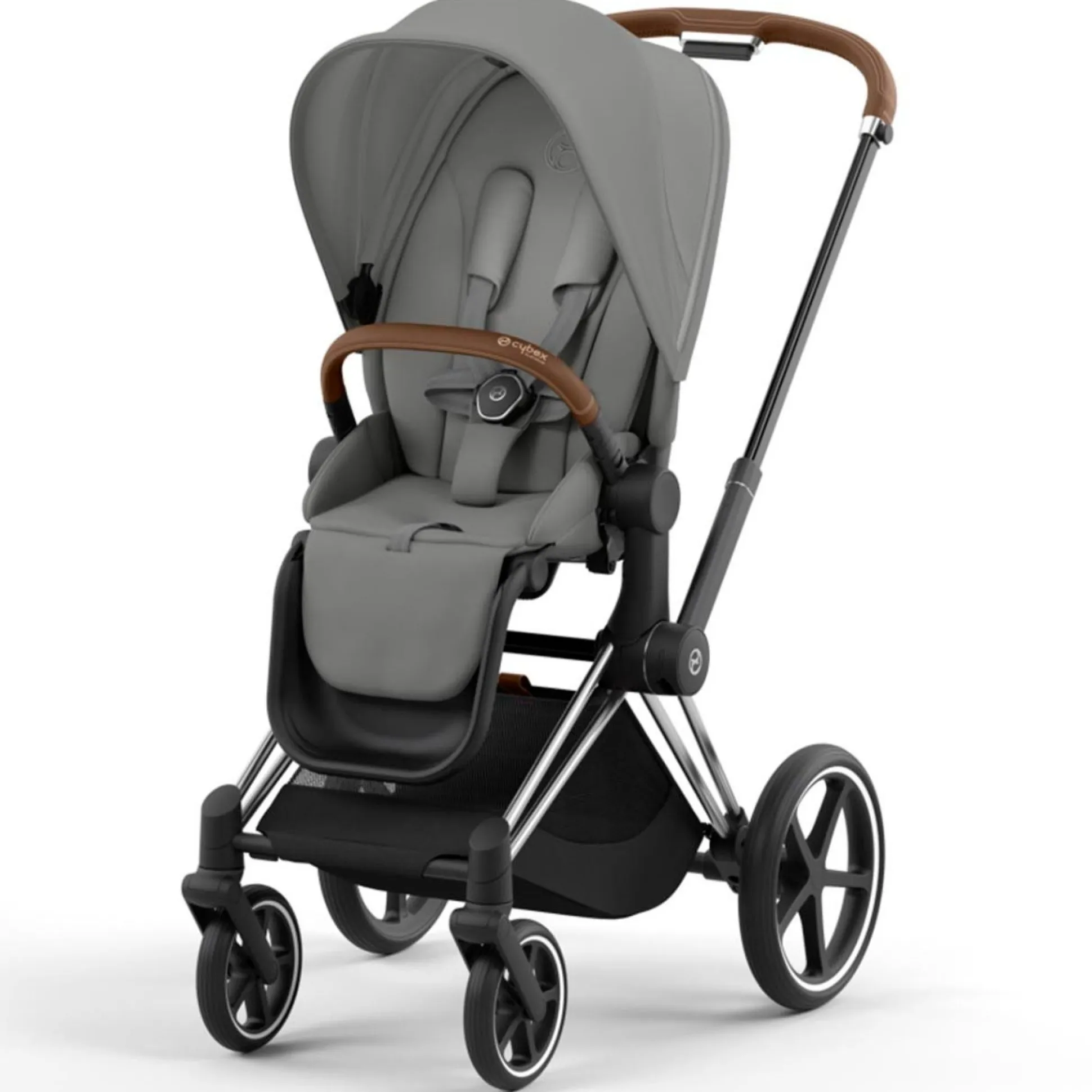 Cybex Priam4 compleet Chrome met bruine handvatten Mirage Grey