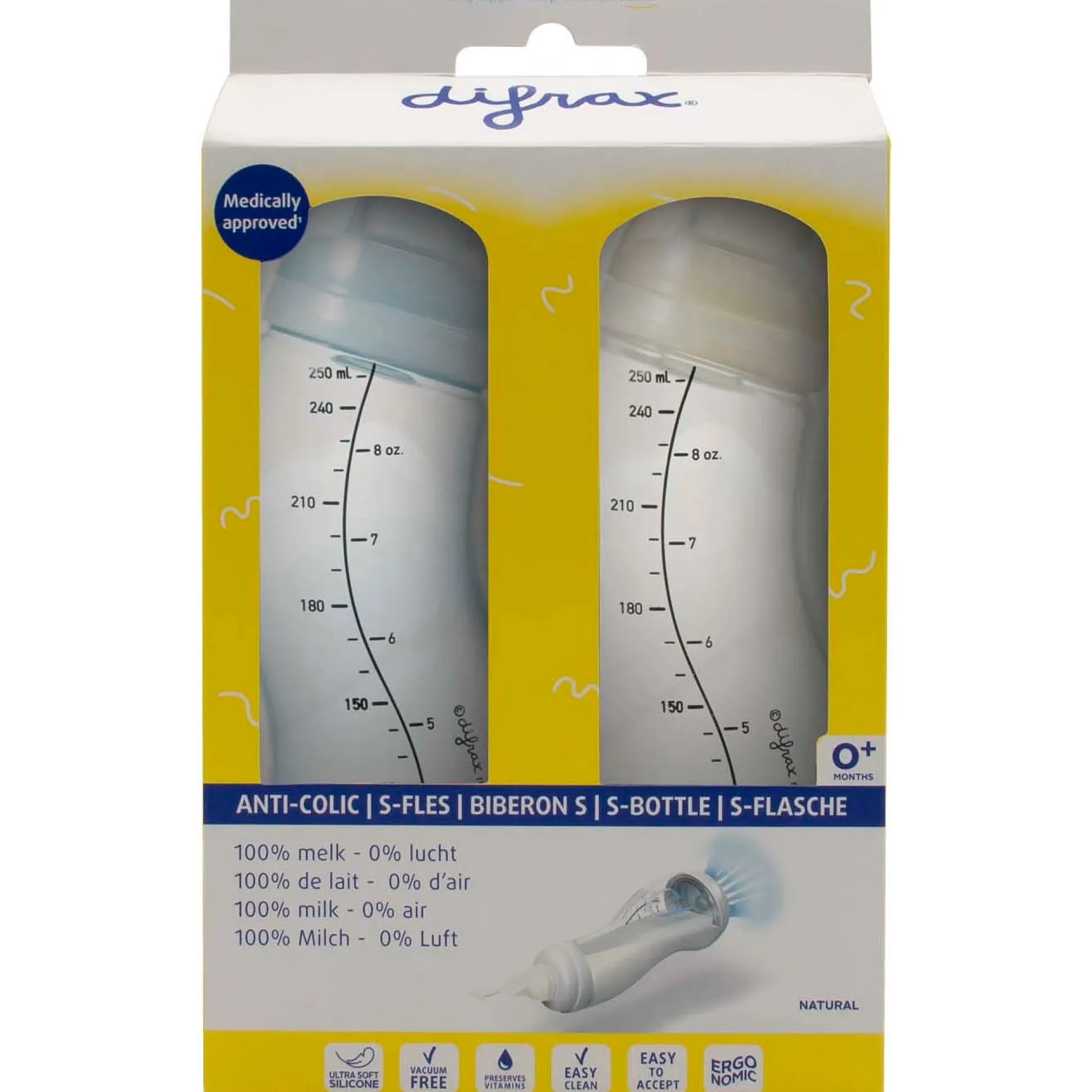 Difrax S-fles Anti-colic – natural 250ml 2 stuks blauw