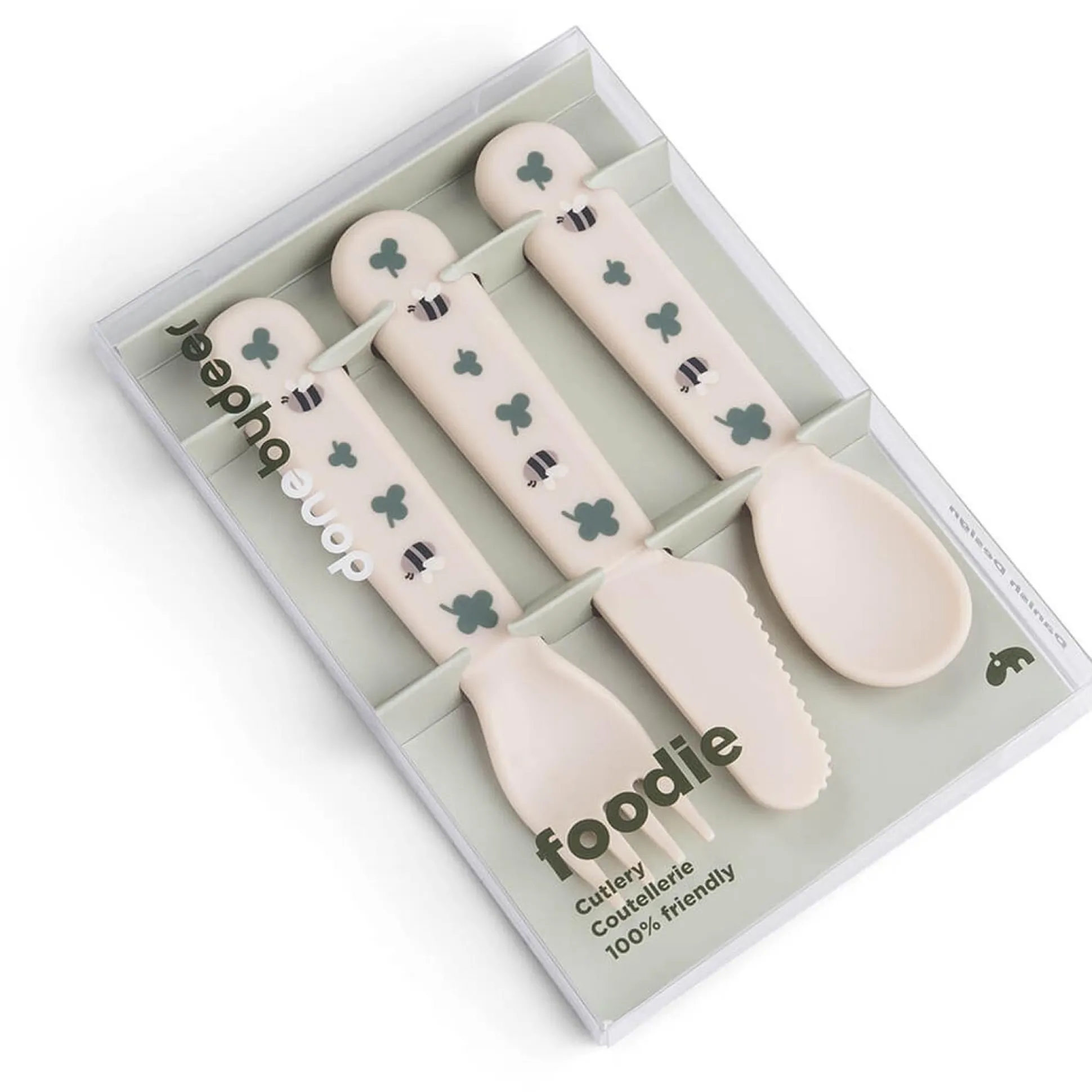Met dit vrolijke besteksetje van Done by Deer wordt het zelfstandig leren eten nog leuker! Het besteksetje komt uit de collectie Tiny Farm en bestaat uit een vork, lepel en mesje. Het bestek is vaatwasser bestendig.