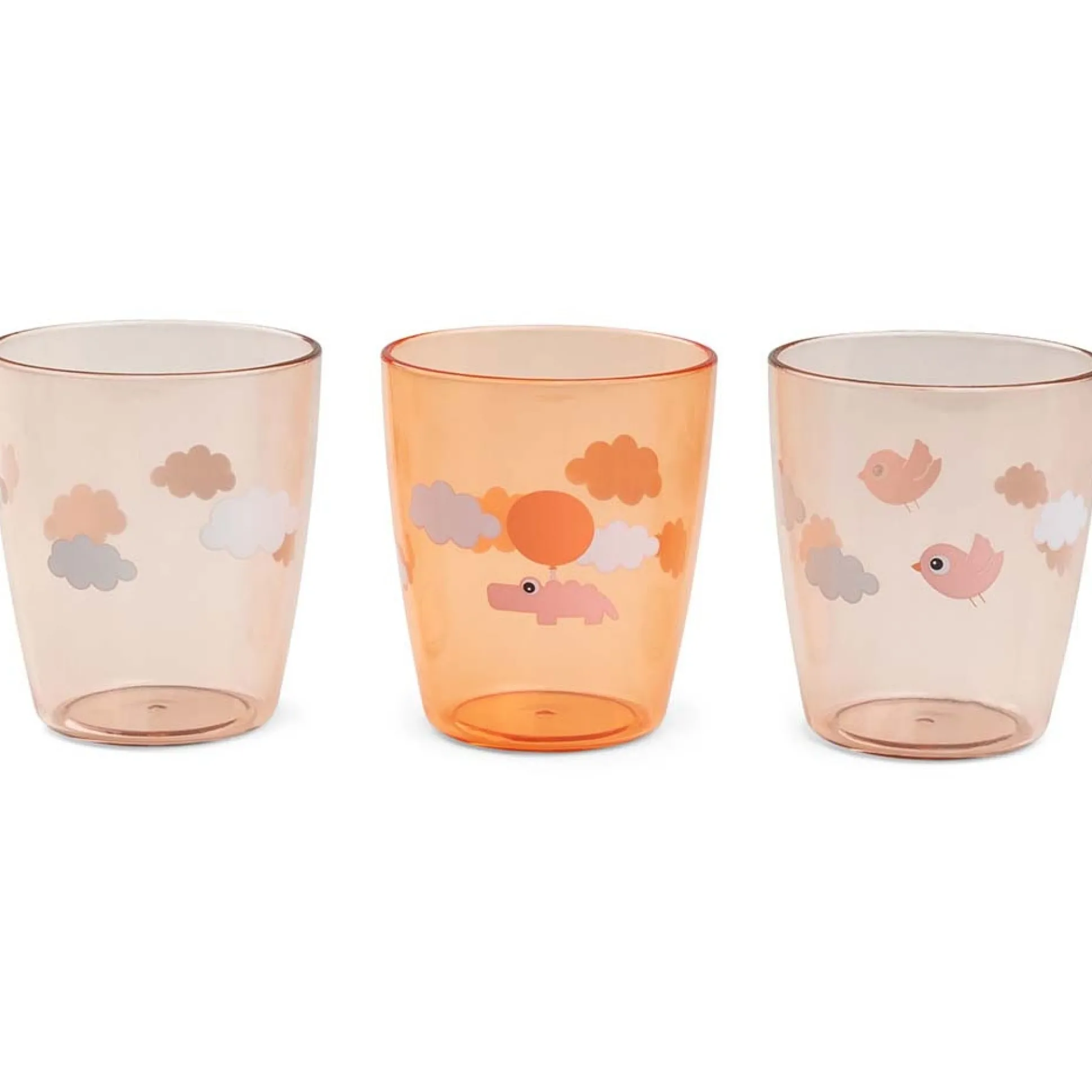 Het miniglas is ontworpen voor kleine handjes. Met drie drinkglazen in deze set staat er altijd een glas klaar voor alle maaltijden van de dag. Het glas is transparant en de vrolijke wolkjes zijn te zien door de heldere beker en het water. De bekers zijn geschikt voor de vaatwasser (max. 70 graden), maar mogen niet in de magnetron.