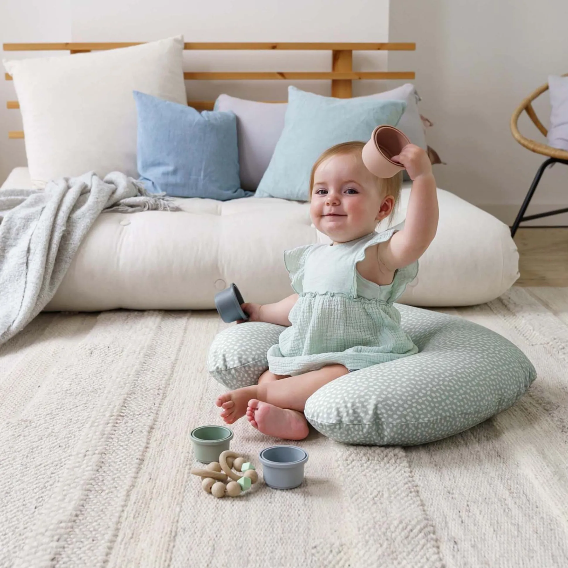 De Softy is een compact, multifunctioneel en supercomfortabel kussen dat je makkelijk rond je middel kan leggen terwijl je je babytje de borst of een flesje geeft. Je kleintje ligt tegelijk heerlijk zacht en veilig. Is je kindje al wat groter, dan plaats je de Softy rond de heupjes als een handig hulpje om tijdens het spelen rechtop te zitten.