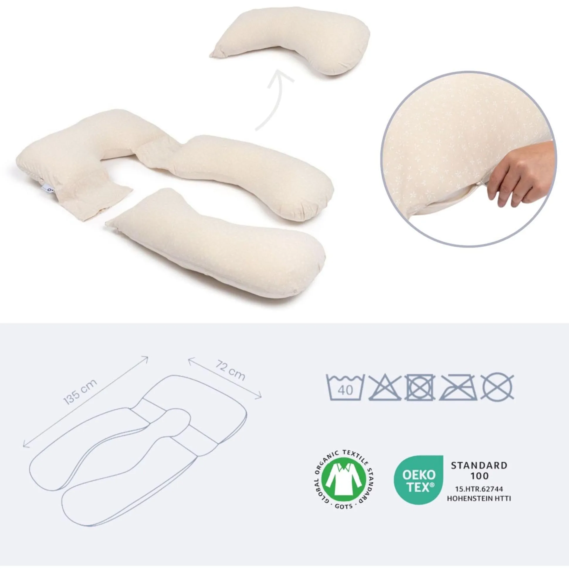 Het Doomoo Maxxy Mama XXL Zwangerschapskussen biedt ultiem comfort tijdens de zwangerschap. Dankzij de hoogwaardige vezelvulling en de ultrazachte hoes van biologisch katoen wikkelt dit kussen zich als een zachte cocon om je heen. Het geeft optimale ondersteuning aan je rug, verlicht de druk op je buik en helpt je benen in een ontspannen, comfortabele houding te brengen. Zo geniet je van een betere nachtrust en meer ontspanning overdag. Het Doomoo Maxxy Mama kussen is bovendien multifunctioneel: het wordt geleverd met een klein, uitneembaar kussentje dat je apart kunt gebruiken, bijvoorbeeld als borstvoedingskussen of extra rugsteun. Het kussen past zich perfect aan jouw lichaam aan, zodat je het op elk moment kunt gebruiken zoals jij het nodig hebt. Onmisbaar tijdens en na de zwangerschap!