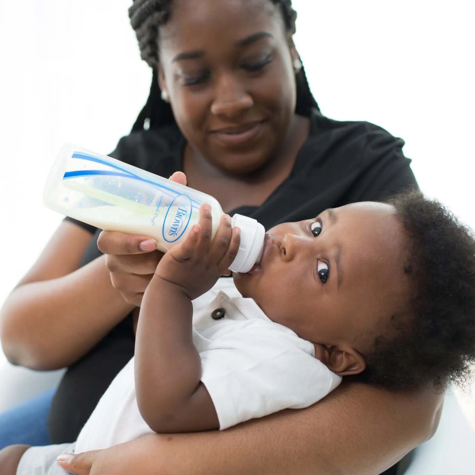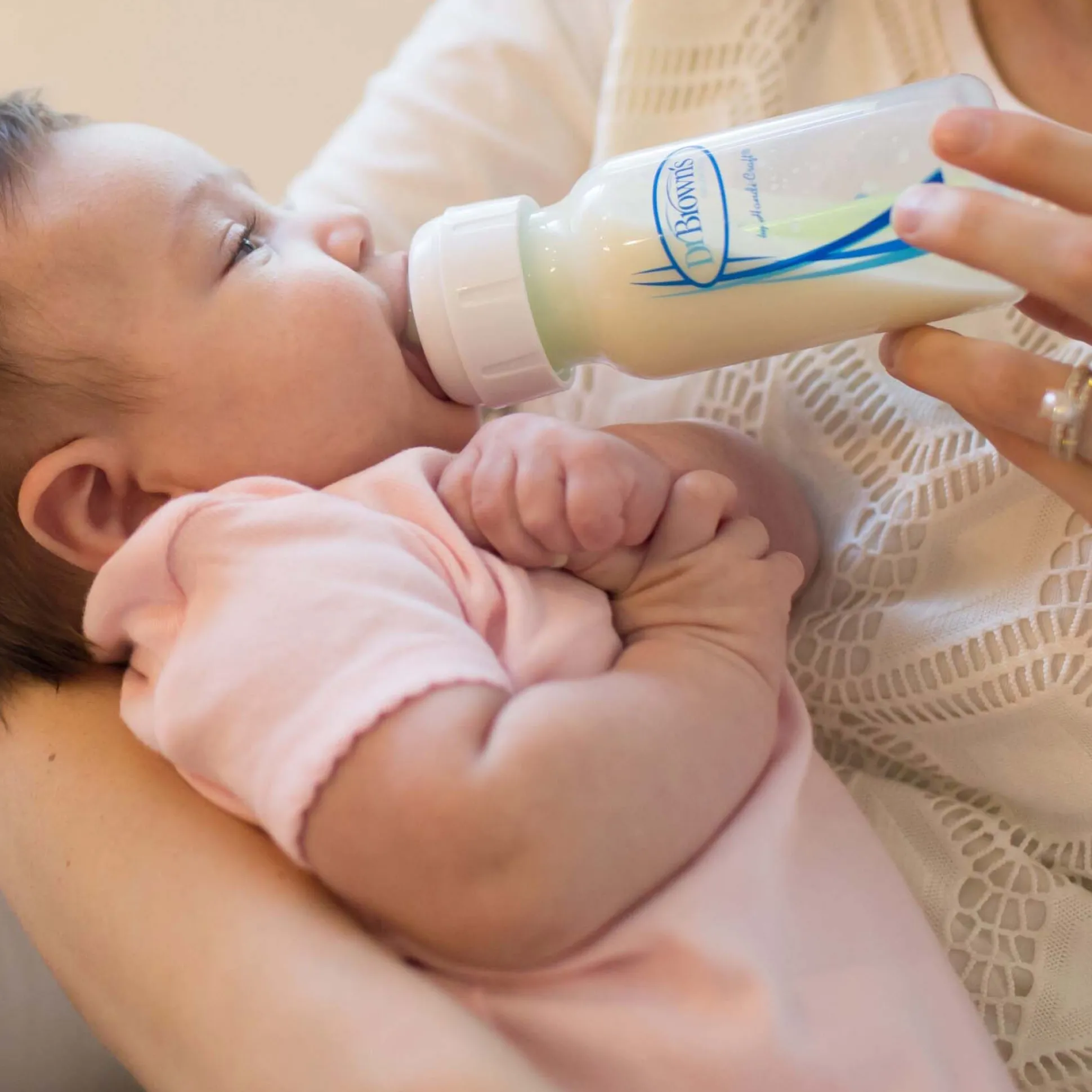 De Standaard halsflessen van Dr. Brown’s helpen darmkrampjes, reflux, spugen, boeren en winderigheid te verminderen. Een Dr. Brown’s fles zorgt voor optimaal behoud van vitamine C, A en E, voedt vacuümvrij en zonder luchtbelletjes. De fles heeft een uniek ventielsysteem dat zorgt voor positieve druk, wat vergelijkbaar is met borstvoeding. De werking is wetenschappelijk bewezen.Wordt makkelijk geaccepteerd, ook door pasgeborenen. Of je een smalle of brede fles kiest, wordt ook bepaald door wat je zelf prettiger vindt vast te houden. De Dr. Brown’s fles past op de Medela borstkolf. Dr. Brown’s startpakket standaard bestaat uit 1x Standaard halsfles (120 ml), 2x Standaard halsfles (250 ml), 3x fase 1 speen, 2x fase 2 speen en 1 reinigingsborsteltje. De flessen zijn vaatwasbestendig (bovenste rek op maximaal 60 graden) en bevat geen BPA, pvc, lood en ftalaten. Wordt makkelijk geaccepteerd, ook door pasgeborenen. Geschikt voor 0-18 maanden.