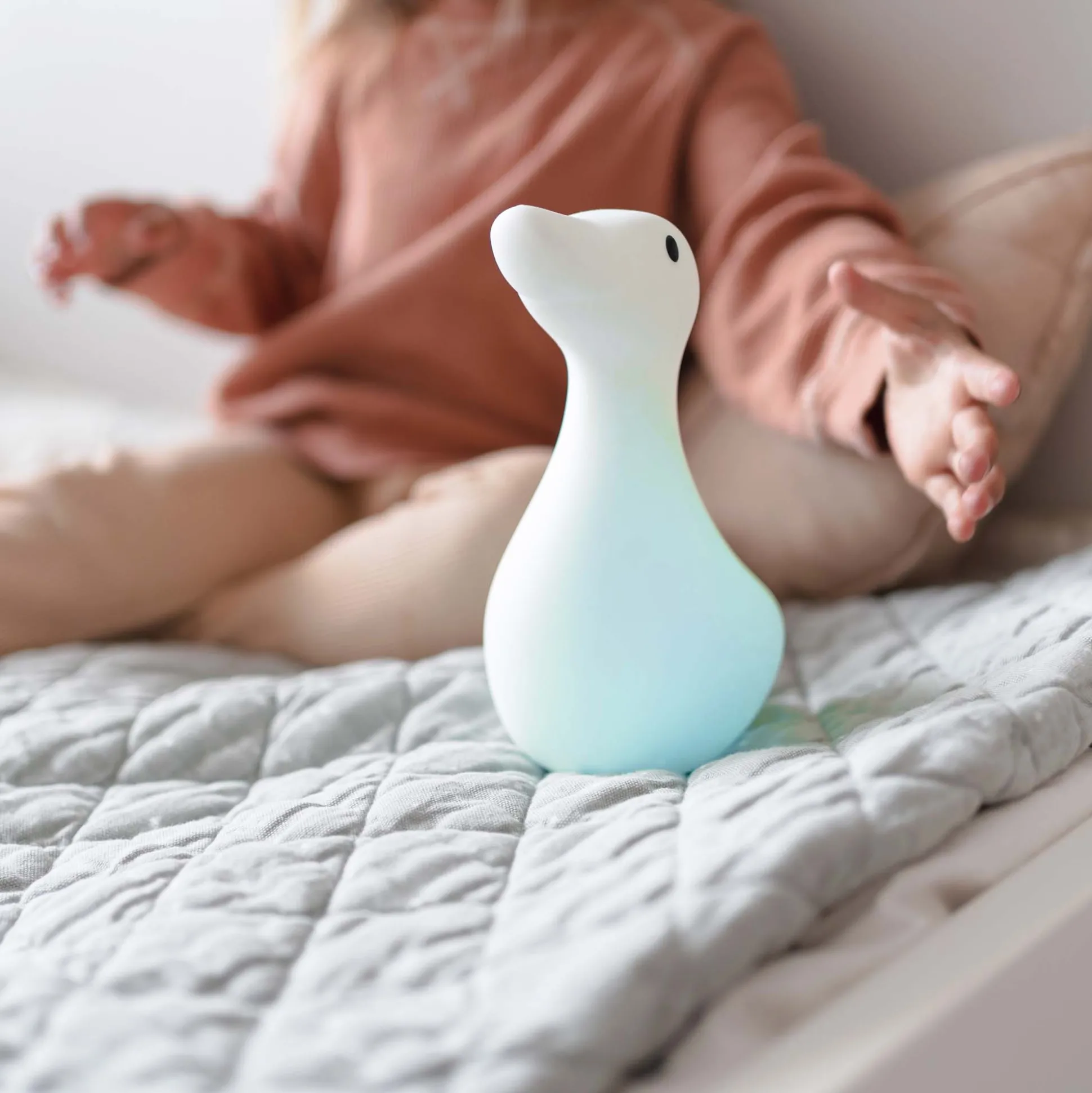Dit leuke nachtlampje van Flow Amsterdam is ideaal voor in de kamer van je kindje. Het lampje heeft verschillende standen: zacht licht, fel licht of gekleurd licht. Door op het lampje te tikken veranderd de kleur van het licht van rood, naar geel, groen of blauw. Het LED nachtlampje heeft een ingebouwde oplaadbare batterij met een batterijduur van 10-20 uur. Je moet hem opladen door middel van de meegeleverde USB-kabel. Het lampje wordt niet warm en heeft verschillende opties. Zo heb je de mogelijkheid om het nachtlampje automatisch te laten uitschakelen, na 15 minuten. Afmeting: 10 x 19 x 10 cm. Materiaal: PVC
