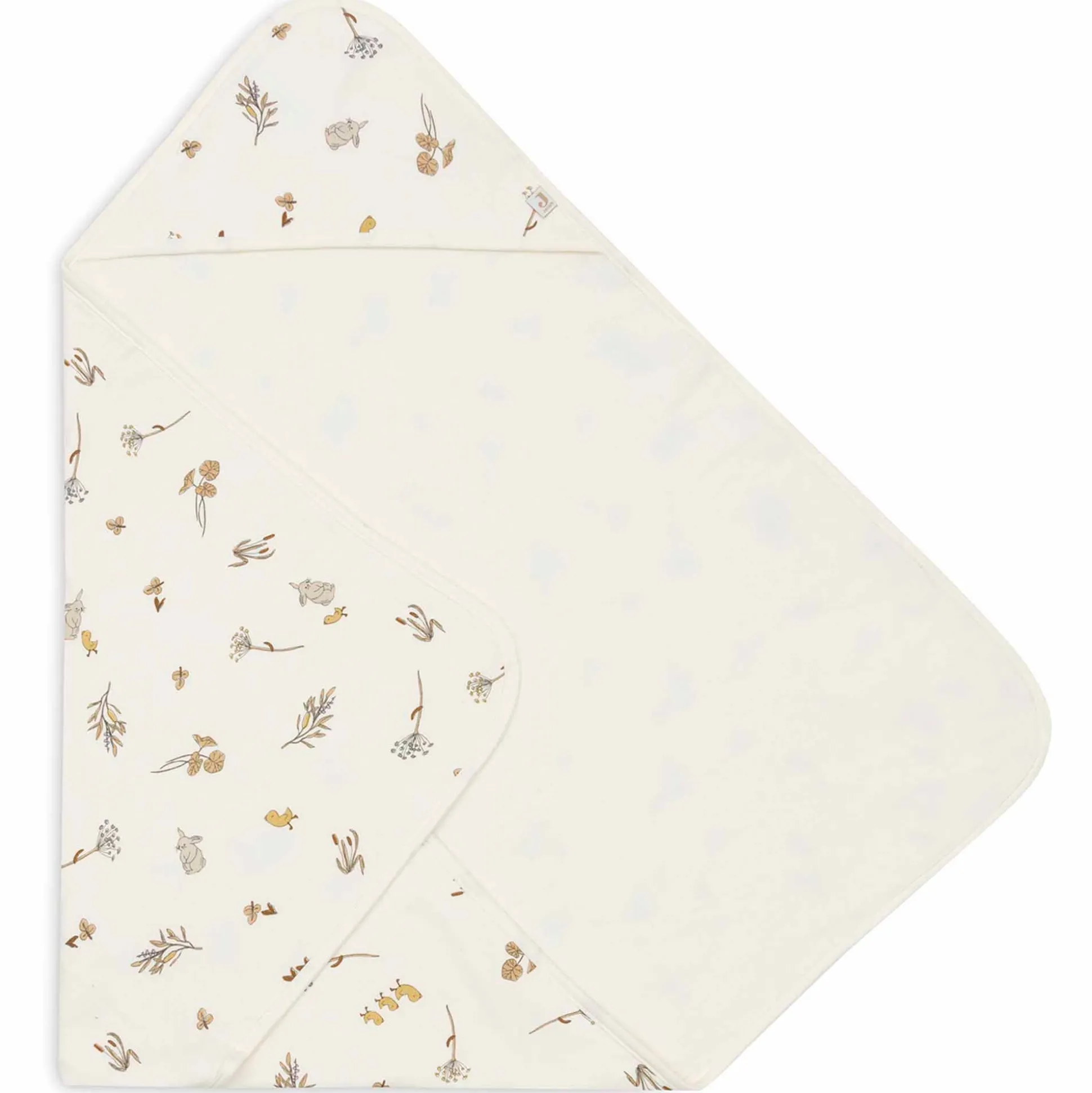Na het badje of zwemmen is deze badcape van Jollein ideaal. Deze badcape is bedrukt in het mega schattige Riverside printje vol met konijntjes, eendjes en riverside plantjes. Met de capuchon bedek je het hoofdje waardoor het daar ook geen warmte verliest. Comfy! De binnenkant heeft het kleurtje Ivory, is mild voor de tere babyhuid en neemt goed vocht op waardoor het afdrogen in een mum van tijd klaar is. De binnenkant is gemaakt van zachte badstof. Na gebruik hang je de cape gemakkelijk op aan het lusje. Dit product kun je strijken maar beter dat je het niet doet. Ongestreken neemt stof meer en beter vocht op. Afmeting 75x75cm.
