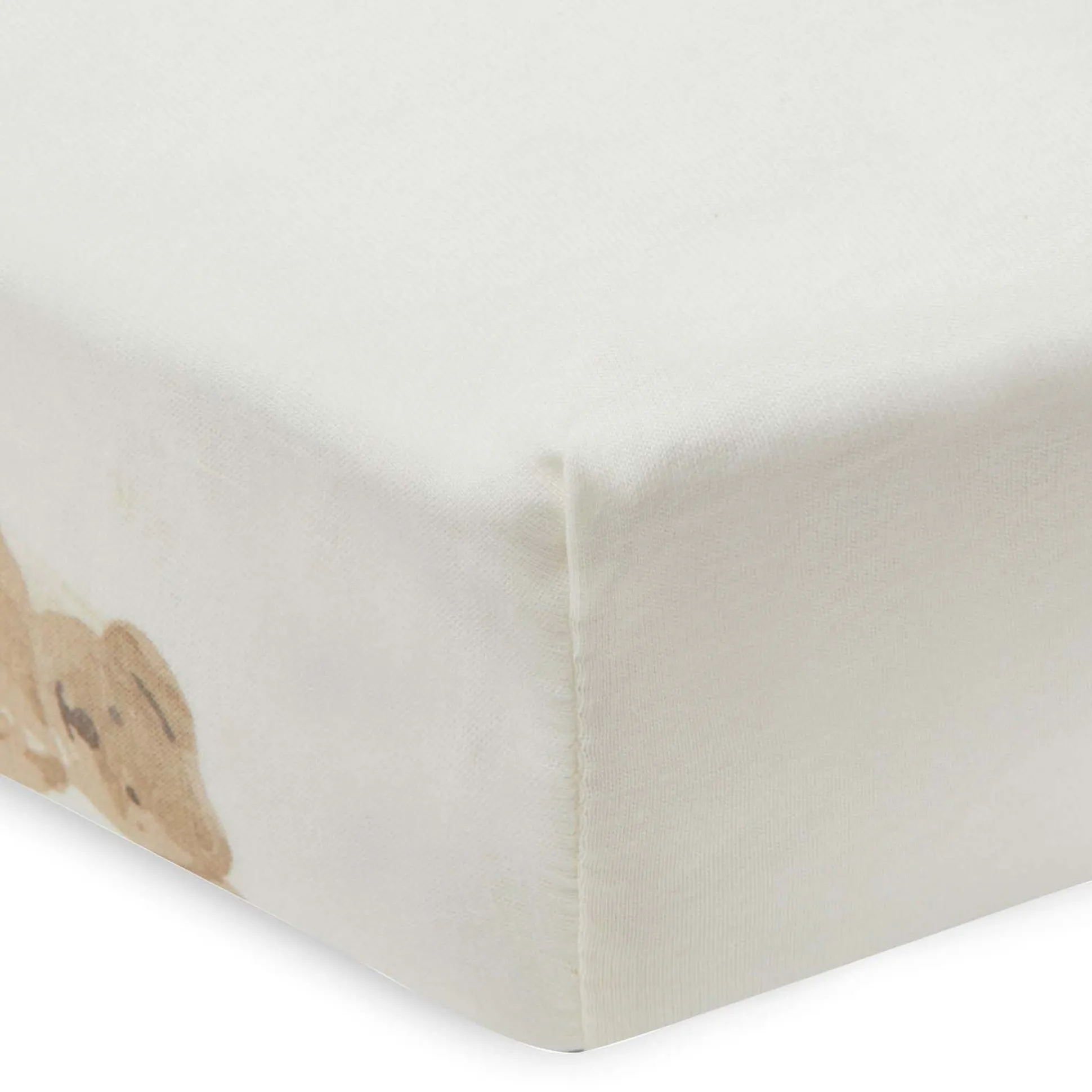 Dit lieve hoeslaken van Jollein komt uit het teddy bear thema en heeft een alloverprint met beertjes. Dankzij de elastieken randen is het hoeslaken eenvoudig aan het brengen rondom het matras. Het hoeslaken zorgt ervoor dat je kindje heerlijk comfortabel ligt en beschermt het matras tegen vocht en vuil. Het hoeslaken is geschikt voor de wieg en co-sleeper. Afmeting: 40/50 x 80/90 cm.
