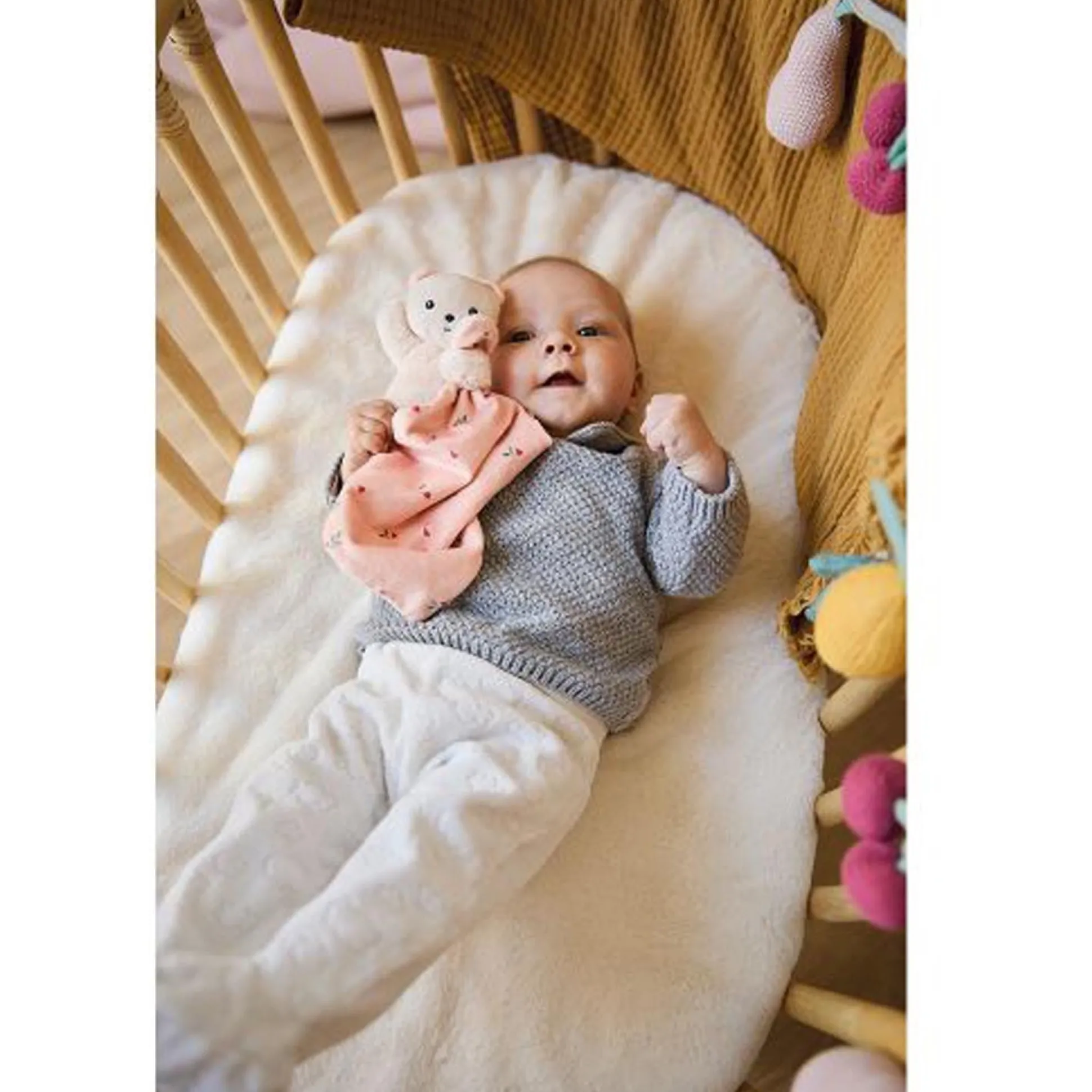 Deze schattige knuffelbeer met zacht micro-velours lijfje en knuffeldoekje met bladerprint is ideaal voor kleine handjes. Gemaakt van gerecyclede materialen, 100% milieuvriendelijk en veilig voor je baby. Geleverd in een mooie bewaardoos, perfect als duurzaam en lief kraamcadeau waar zowel baby als planeet blij van worden.