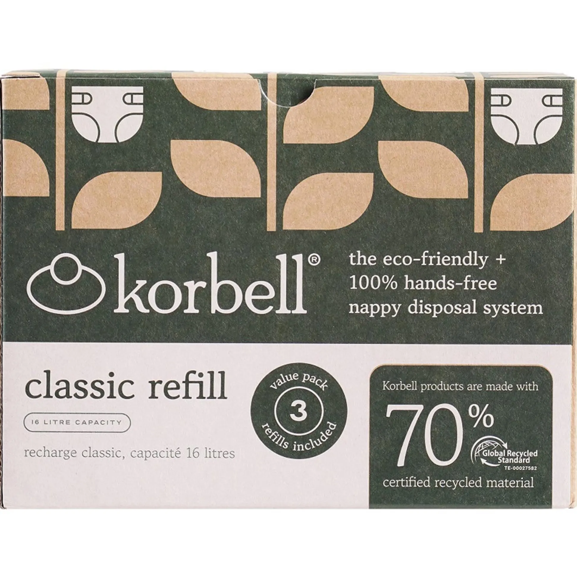 De Korbell luieremmer navullingen maken het weggooien van gebruikte luiers eenvoudig, hygiënisch en praktisch. Dankzij het slimme snijsysteem van de Korbell luiertonne bepaal je zelf de lengte van de zak, waardoor er geen onnodig plastic wordt verspild en elke navulling extra lang meegaat – tot wel 495 luiers per rol. De navullingen zijn vervaardigd voor 70% uit GRS-gecertificeerd gerecycled materiaal en verpakt in 80% gerecycled materiaal, wat ze tot een milieuvriendelijke en bewuste keuze maakt. Zo combineer je optimaal gemak, duurzaamheid en hygiëne bij het verschonen van je baby, terwijl je altijd genoeg zakmateriaal hebt voor een frisse en geurvrije baby- of kinderkamer.
