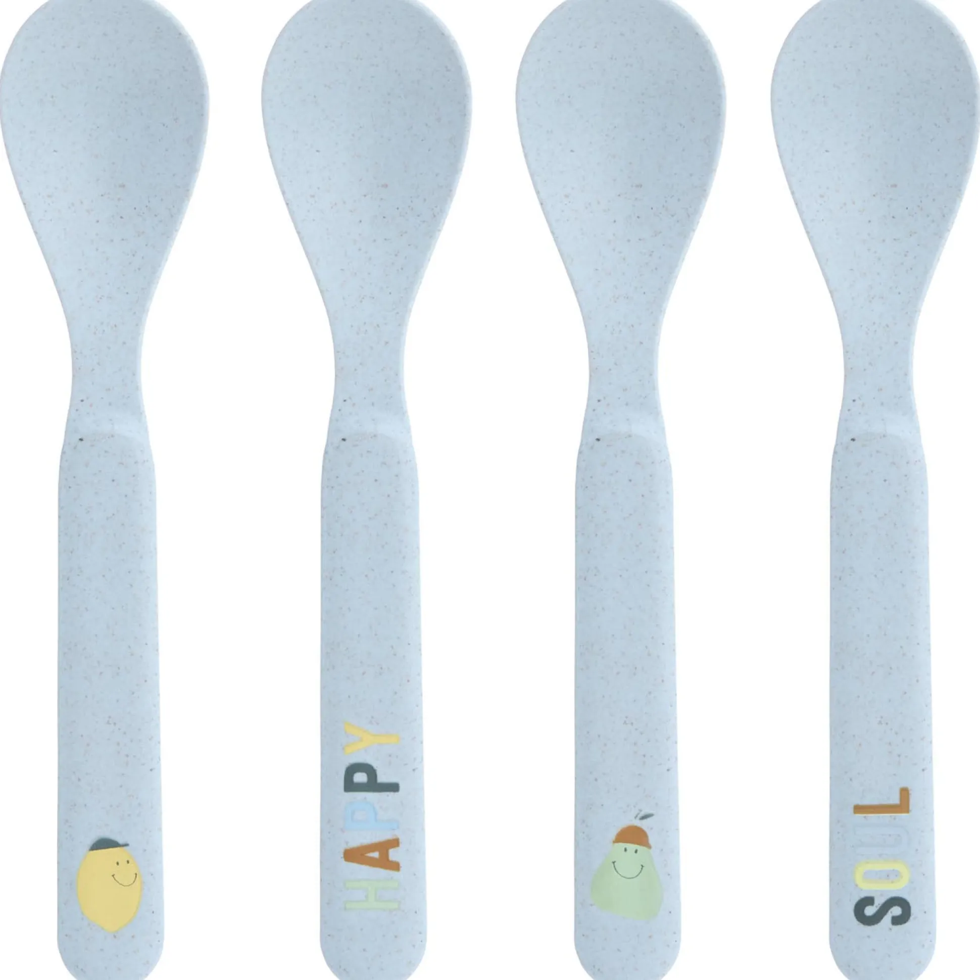 De 4-delige lepelset van de LÄSSIG Happy fruits collectie is functioneel, heeft een vrolijke lemon/pear print en is gemaakt van duurzaam materiaal. De anti-slip ring aan de onderkant zorgt voor een goede grip op de tafel. BPA vrij, vaatwasser en magnetron bestendig.