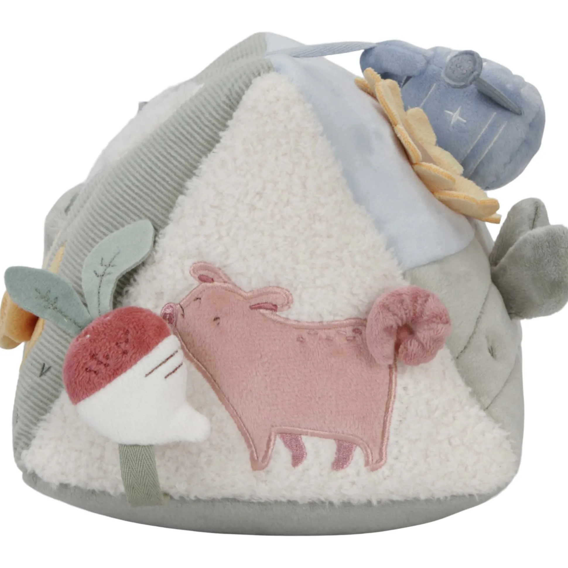 Deze activiteitendriehoek van het merk Little Dutch komt uit de collectie Little Farm. Deze veelzijdige activiteiten driehoek neemt kleine kinderen mee op avontuur terwijl ze op hun buik liggen. Onderweg valt er veel te ontdekken. Van knisperende vleugels van de kip tot aan een spiegeltje en een rammelende gieter. Het product heeft speelse functies en leuke texturen die de zintuigen en verbeeldingskracht van je baby prikkelen. Afmeting 35x19x20 cm. Minimum leeftijd 0+ maanden. Wasvoorschrift wasmachine 30 graden.