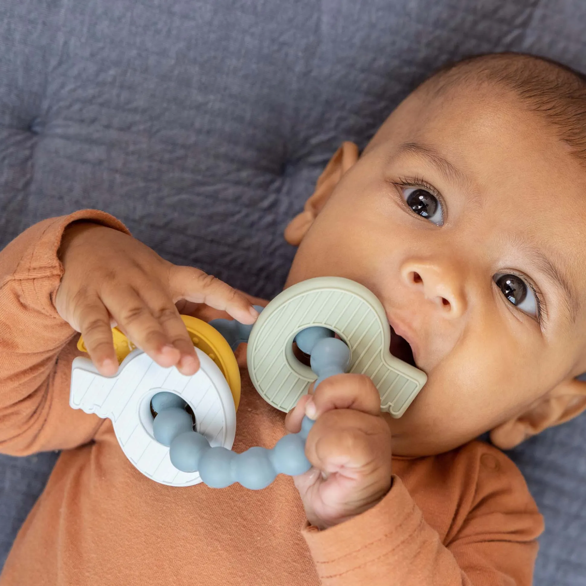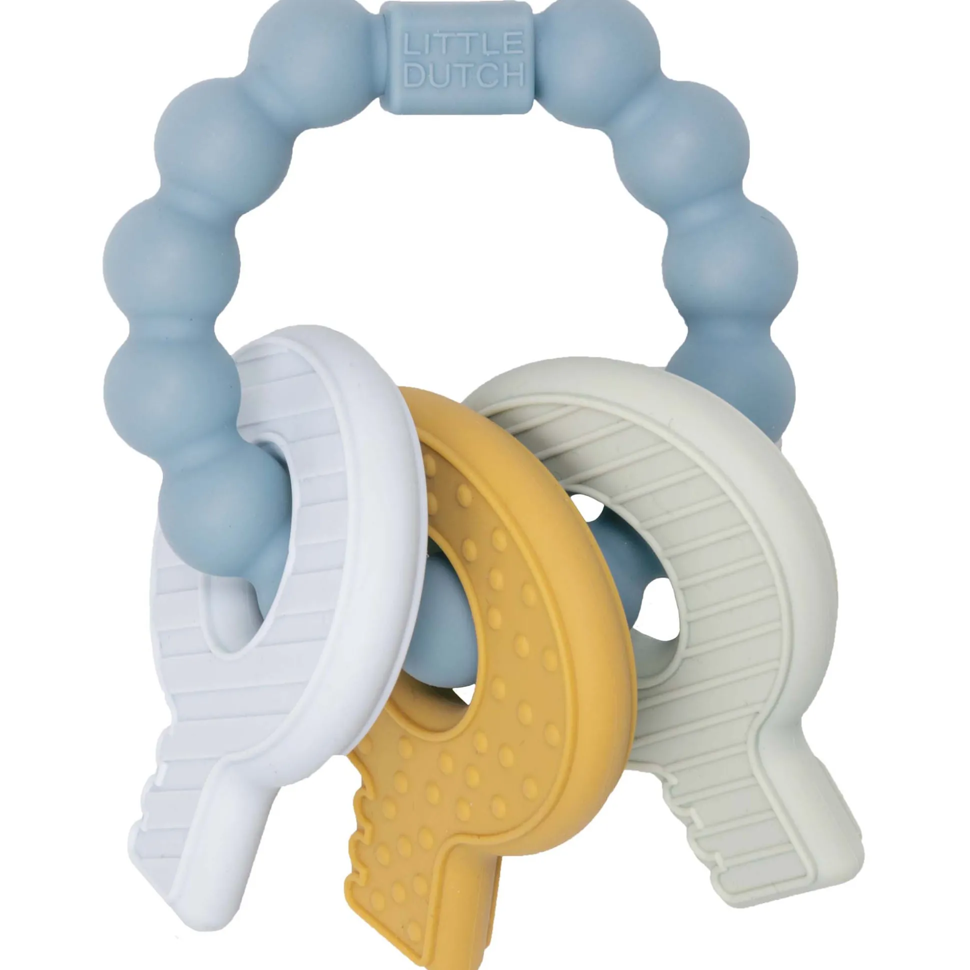 De komst van de eerste tandjes is een mijlpunt voor je kindje, maar niet altijd even prettig! Om de pijn te verlichten heeft is deze multifunctionele bijtring van Little Dutch erg handig. Dit bijtspeeltje, in de vorm van een sleutelbos, is een speeltje dat helpt bij de nieuwe tandjes die door te komen maar biedt ook troost aan je kindje. Het bijtspeeltje heeft verschillende texturen waardoor je kindje genoeg te ontdekken heeft. Speciaal ontworpen dat het makkelijk vast te pakken is voor kleine handjes!. Materiaal: siliconen. Geschikt voor kindjes vanaf 4 maanden.