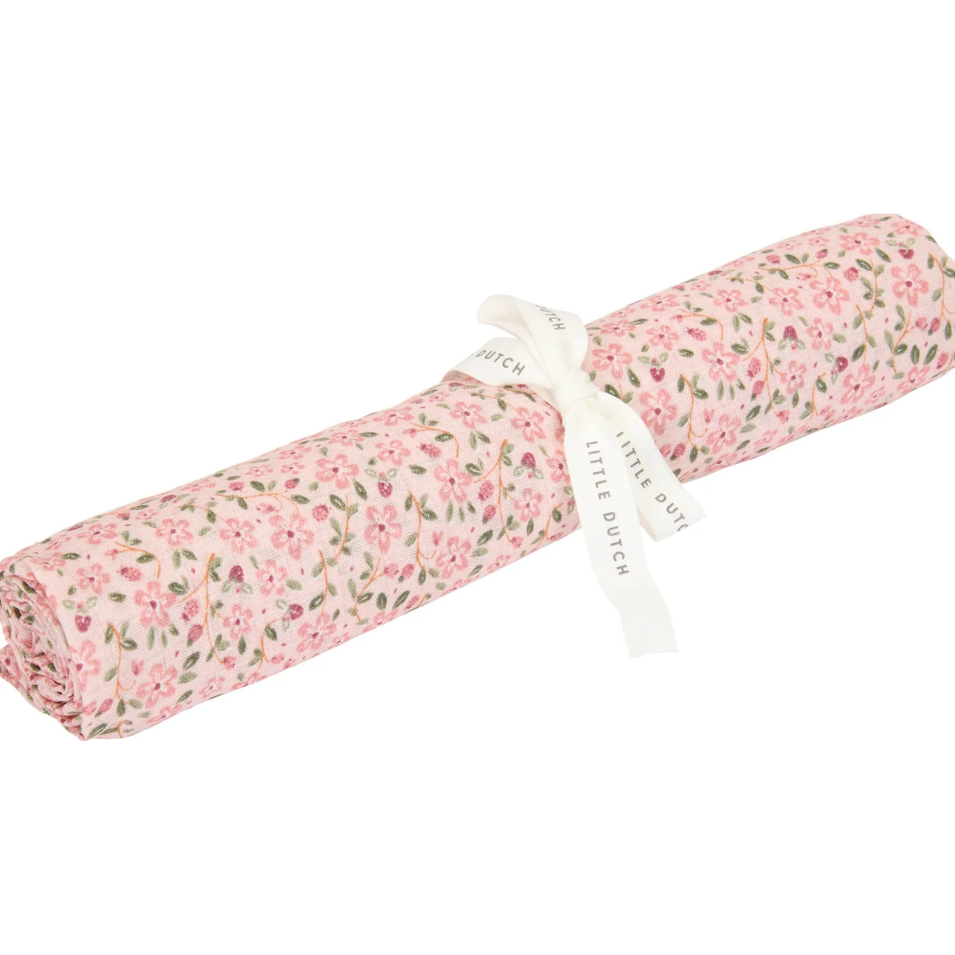 Omring je kleintje met zachtheid en liefde met deze veelzijdige hydrofiele swaddle van Little Dutch. Perfect om je baby af te drogen na een bad, als ondergrond voor het verschonen, of als spuugdoek tijdens de voeding. De swaddle heeft het Fairy Floral-dessin, met een zacht roze canvas versierd bloeiende bloemen. Het 100% biologisch katoen is Oeko-Tex gecertificeerd, heerlijk zacht, vocht absorberend en sneldrogend. Een echte multifunctionele must-have. Afmeting: 120x120cm.