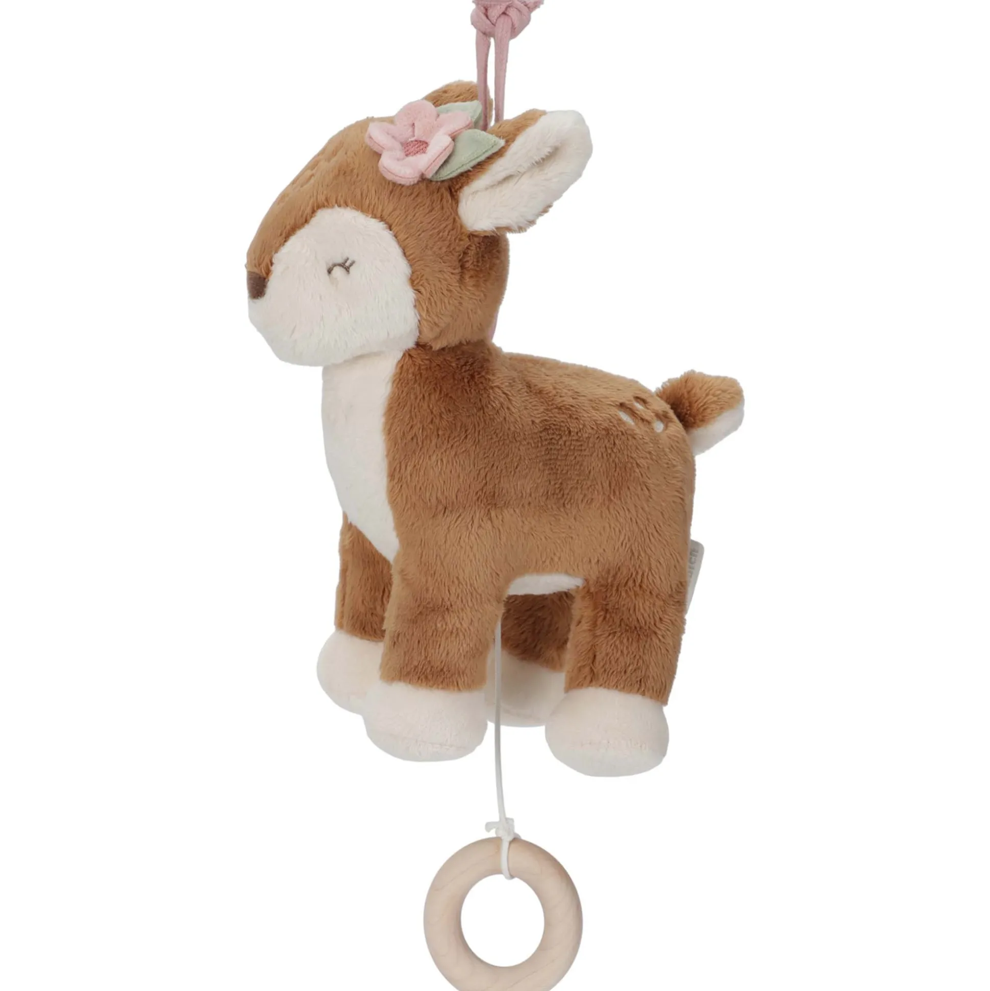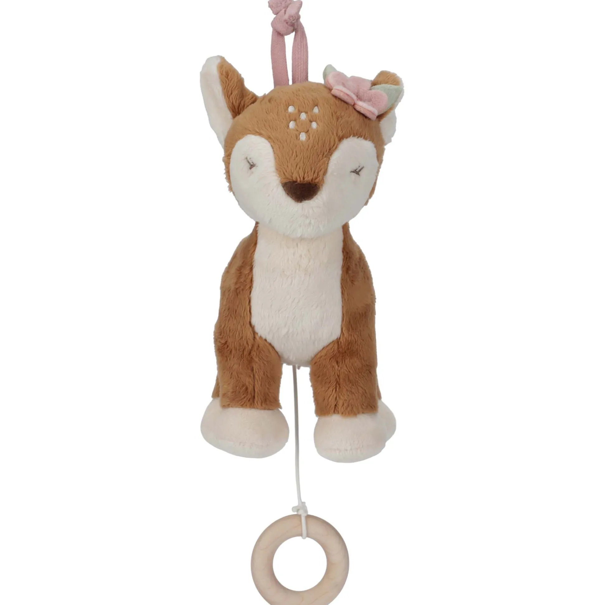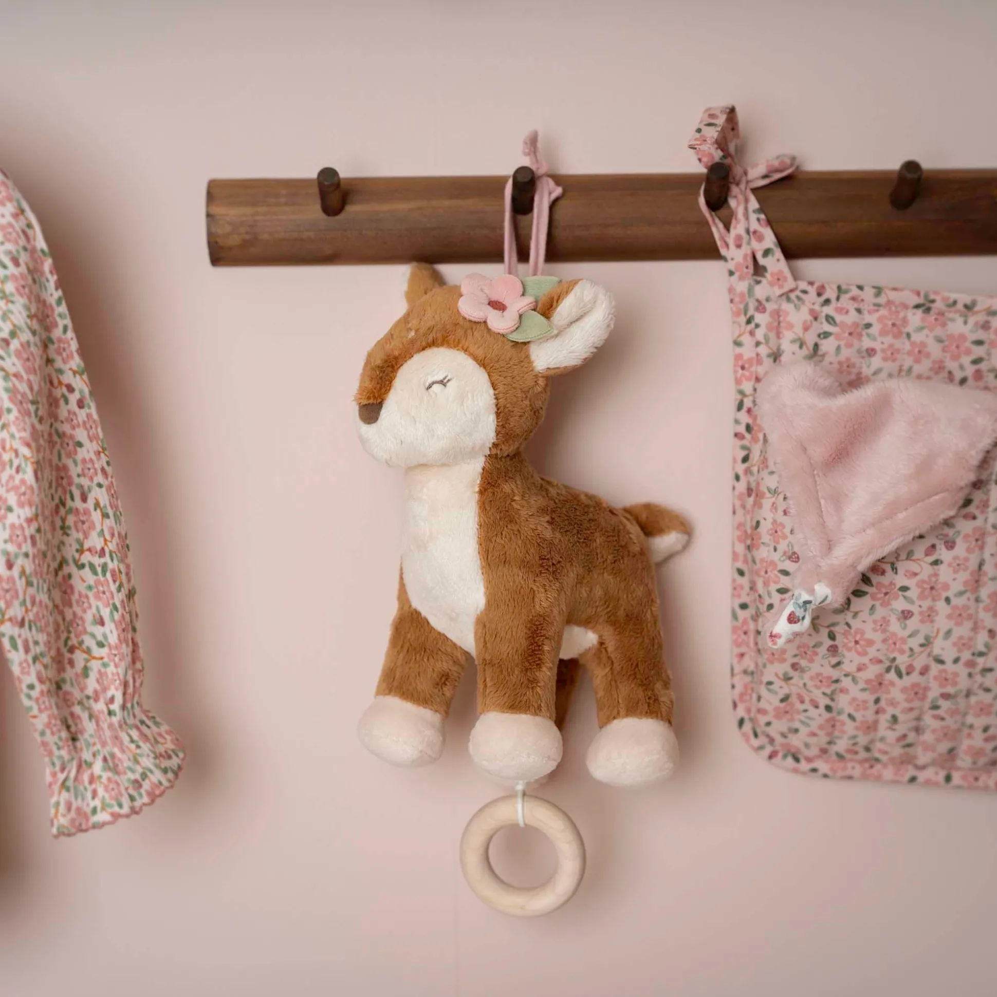Dit slapende hertje van Little Dutch leidt je kindje naar een droomwereld vol verwondering en verbeelding. Creëer een vaste routine voor bedtijd met de betoverende melodieën van deze schattige muziekdoos. Trek aan de houten ring en het rustgevende slaapliedje begint te spelen terwijl je kleintje heerlijk in slaap dommelt. Een prachtig cadeau en een mooie decoratie voor de babykamer.Het muziekdoosje kan niet in de wasmachine, enkel oppervlakte reinigen met een vochtige doek.