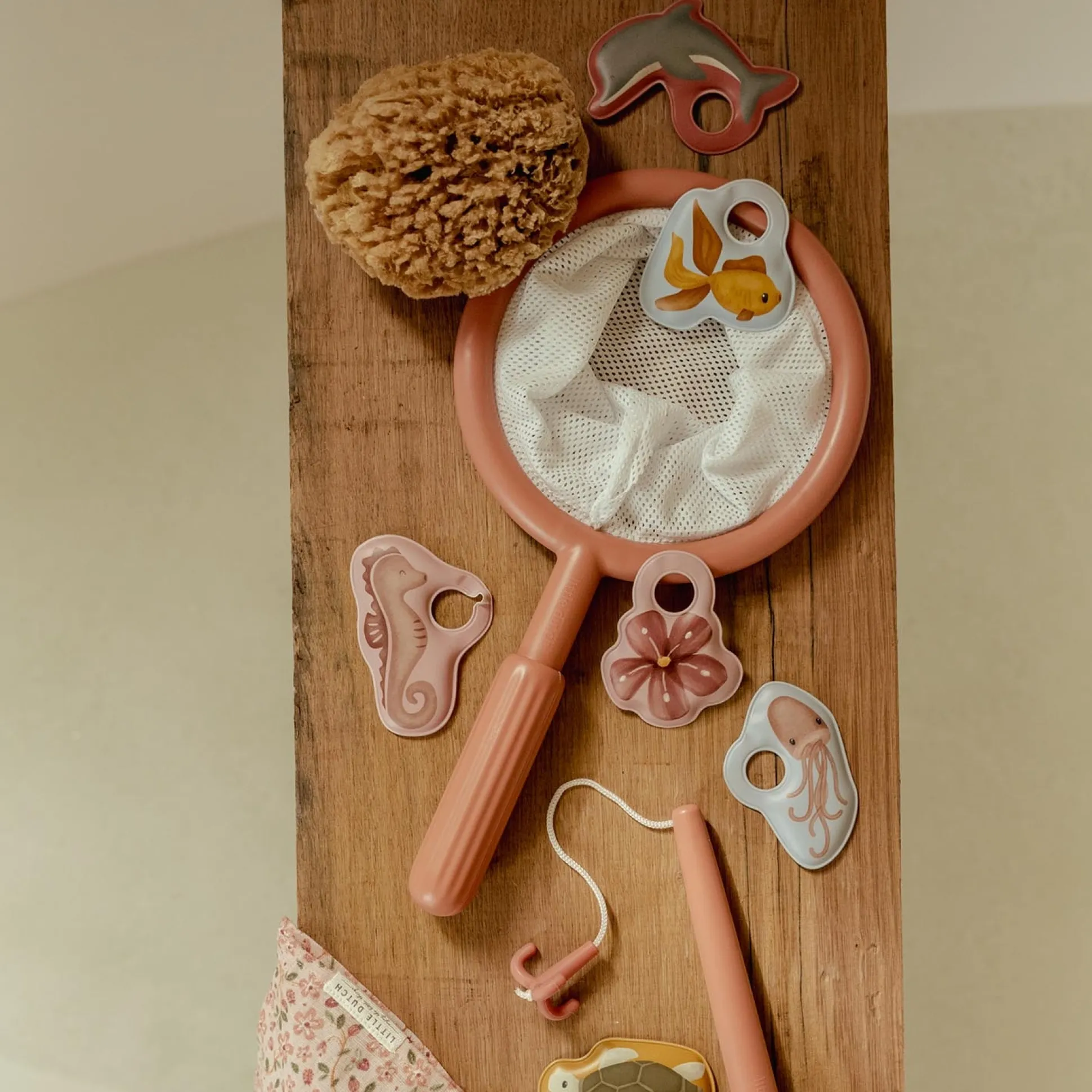 Vang jij de meeste onderwaterdieren met dit leuke vis spel van Little Dutch? Dit spel stimuleert de fijne motoriek en de concentratie van kinderen. De set bestaat uit een hengel en een schepnet en 8 figuren om of te vissen. De handvatten van de hengel en het schepnet kunnen losgeschroefd worden, om makkelijker te kunnen opbergen. De set is verpakt in een full colour doos en geschikt voor kinderen vanaf 36 maanden.