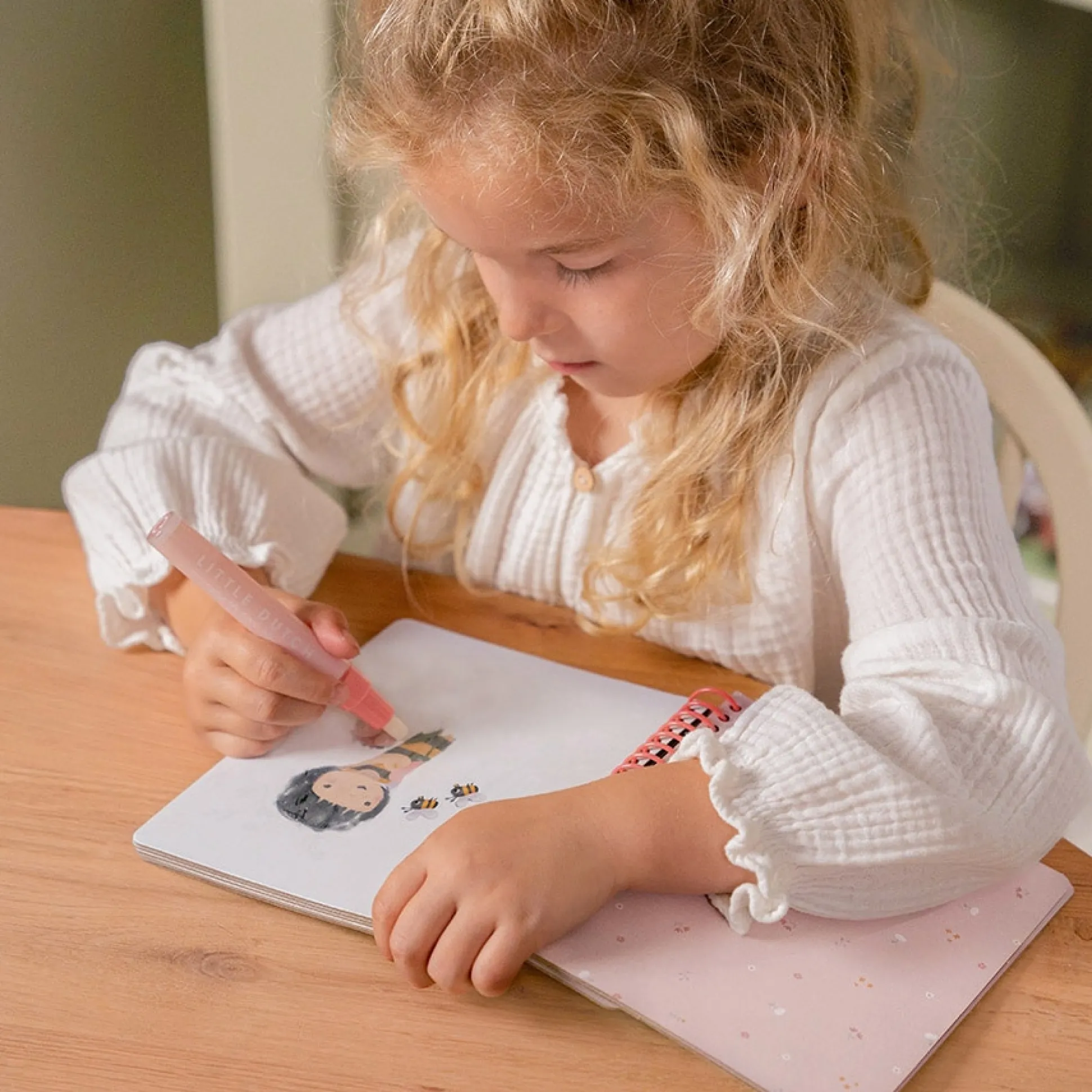 Wauw, zo wordt tekenen magisch! Met dit Little Dutch Rosa & Friends watertekenboek maak jij de mooiste creaties van onder andere Rosa, Evi en Julia in de bloementuin. Op elke pagina is alvast een stukje ingekleurd zodat je een hint hebt van de tekening die er verborgen zit. Vul de bijgeleverde speciale pen met water en begin met tekenen. Wanneer water op het karton terecht komt verschijnen er de mooiste, vrolijke tekeningen. Als het papier opdroogt kun je de tekening weer opnieuw maken, waardoor je keer op keer plezier hebt. Het boek is gemaakt van stevig karton met herkenbare Little Dutch designs en kleuren en heeft een handige ringband. De ideale activiteit voor thuis en onderweg!Leerpunten: ontwikkeling van de fijne motoriek, creativiteit en concentratie -geschikt voor kinderen vanaf 3 jaar-complete set van boek en navulbare stift-geen geklieder want er wordt “geschilderd” met water-na drogen, telkens weer opnieuw te gebruiken-met handige ringband